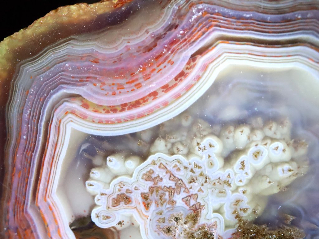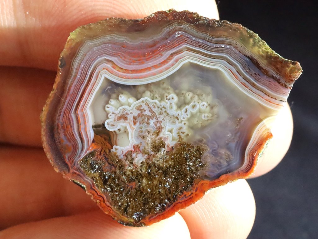 Uvnitř totiž kamínky skrývají působivou a pro acháty typickou kresbu, často i se zajímavou kombinací barev. Můžou se zde někdy vyskytovat i příměsy dalších minerálů nejčastěji bílého až čirého křišťálu, fialového ametystu, jaspisu či karneolu.