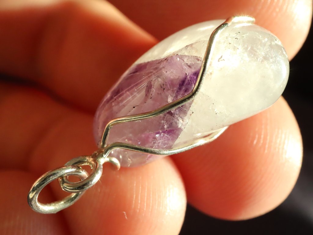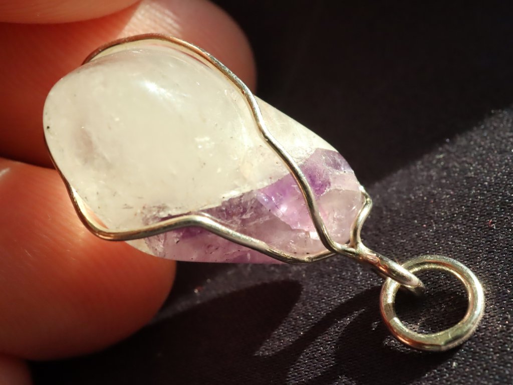 Uchycení kamene ve stříbře je čistě ruční práce, nejedná se tedy o žádnou strojní velkovýrobu a každý přívěsek je originál. Ametyst navíc není vrtaný ani žádným způsobem přilepený. Kamínek je pouze precizně opleten stříbrným drátkem, který pro něj vytvoří tzv. klícku, ve které bezpečně drží. Dražší přívěsky se navíc pyšní složitějším a propracovanějším řemeslným zpracováním či jsou decentně zdobené například kapičkami stříbra či jinými zajímavostmi. Mnohdy jsou v nich také zasazeny unikátní kameny.
