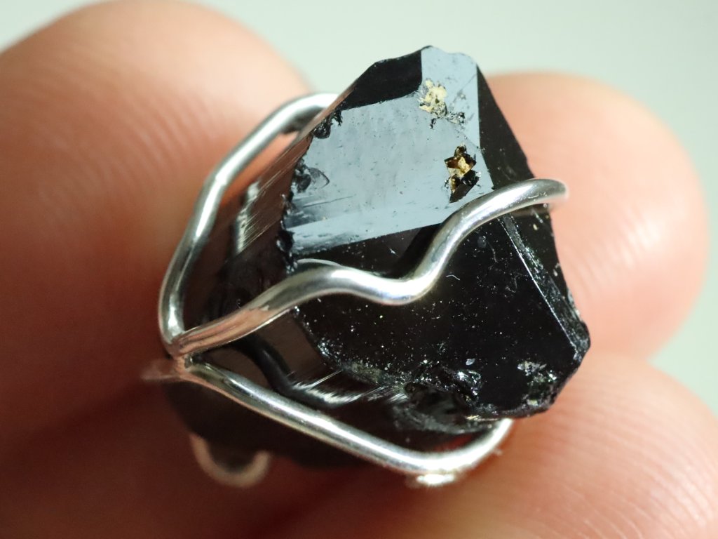 Přírodní černý turmalín skoryl nalezený v oblasti Vysočiny (naleziště Pikárec), nápaditě a precizně zasazený do stříbrného přívěsku / šperku.
