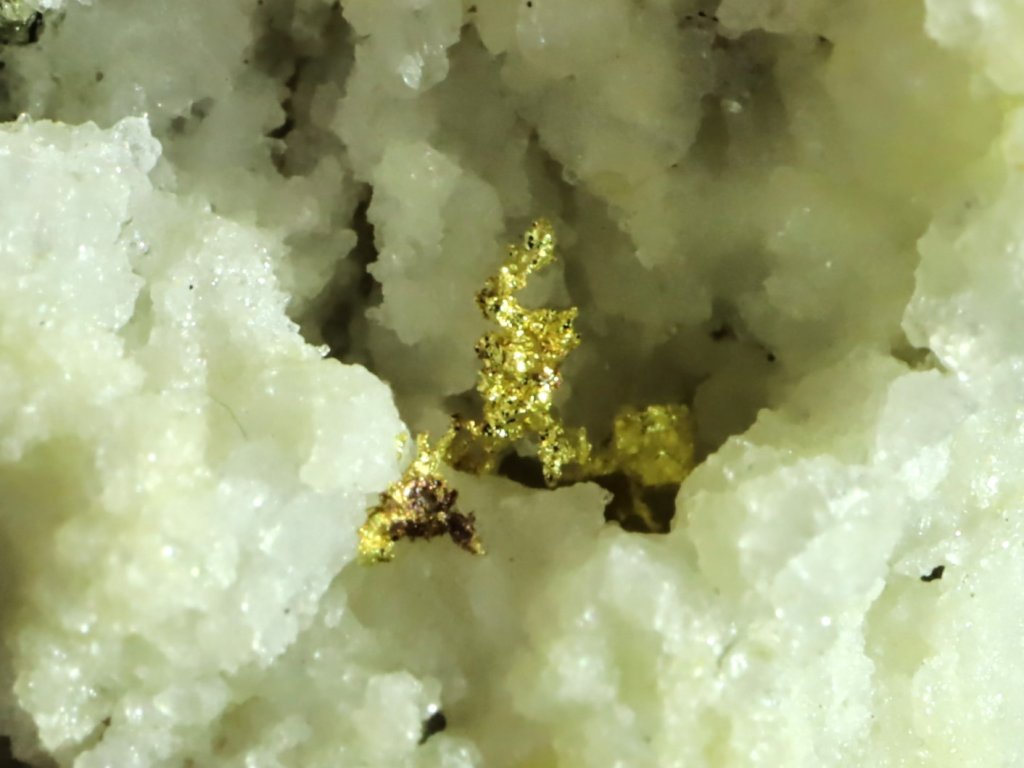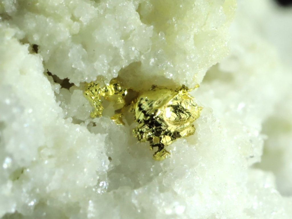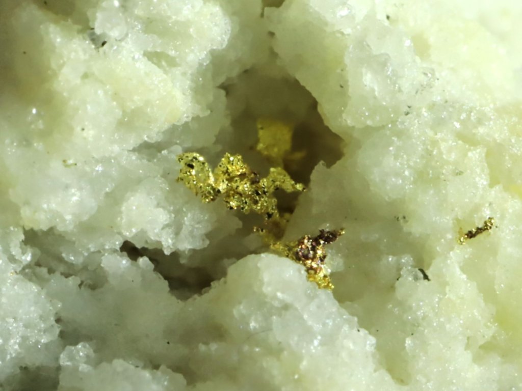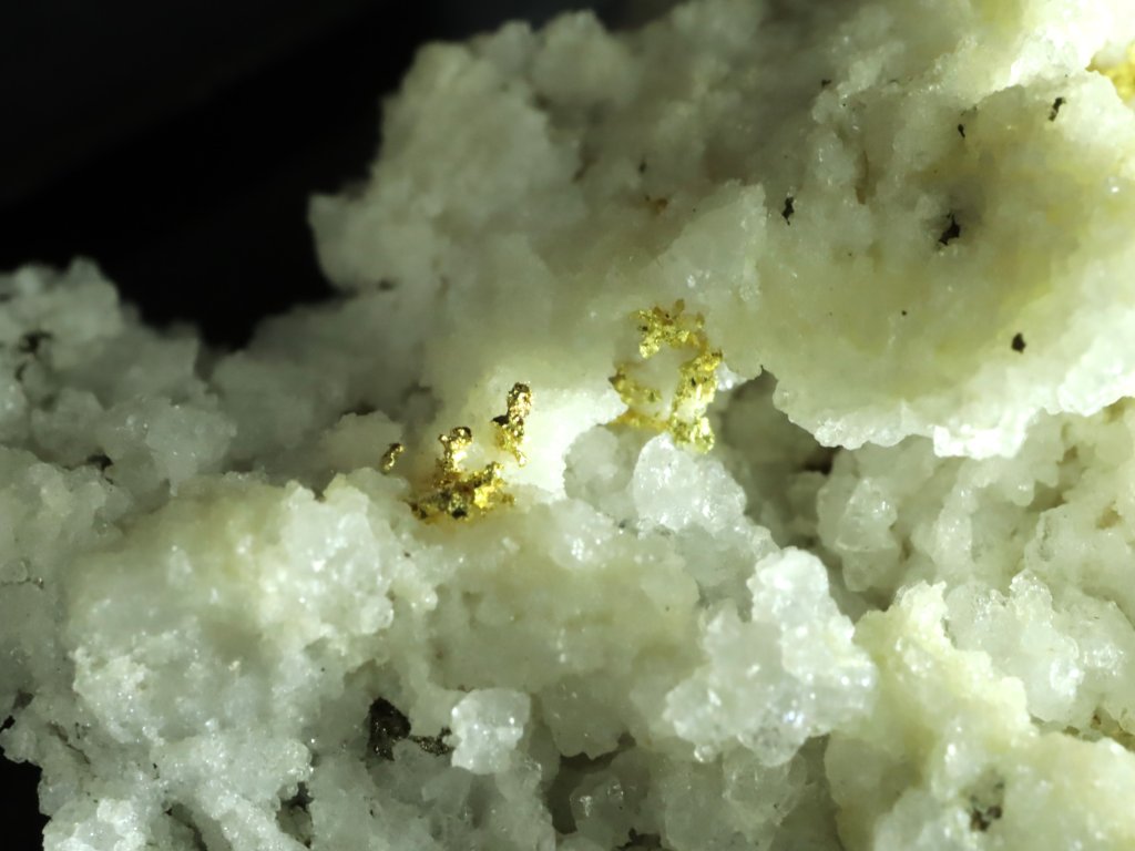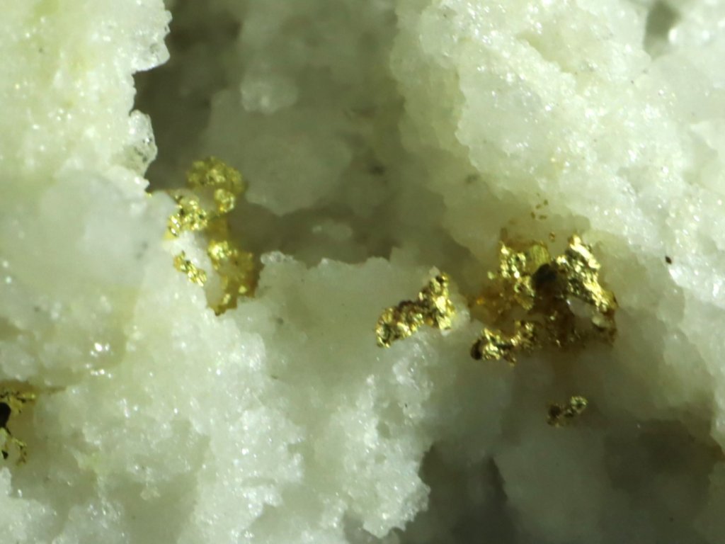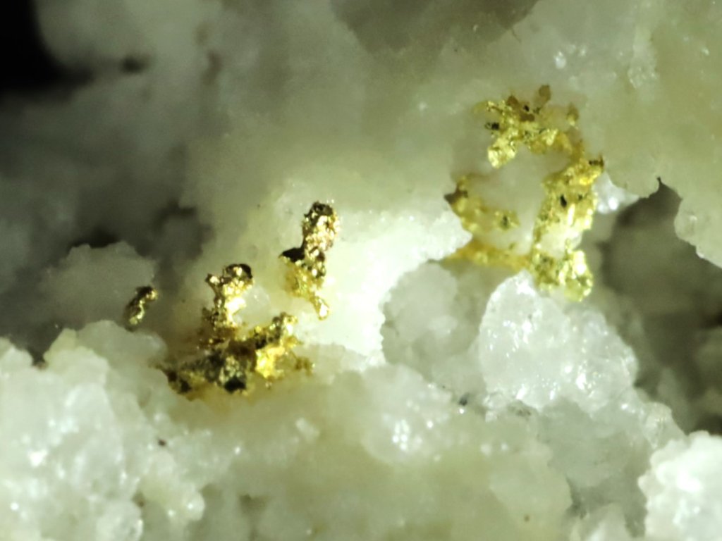 Zlatinky, zlaté plíšky, keříčky či nugetky většinou nejsou pouhým okem na podobných vzorcích úplně dobře viditelné či patrné a mnohdy je i velice obtížné je na vzorku (podložkové hornině) vůbec najít či spatřt. Tento konkrétní vzorek však patří k těm skutečně hodnotnějším a zlaté keříčky / plíšky zde mají slušnou velikost , krásnou žlutou barvu i lesk, takže je lze dobře pozorovat a kochat se jimi i při běžném prohlížení okem. Pokud však chcete vidět opravdové detaily například zlatých keříčků, je potřeba si vzít na pomoc lupu či kvalitní fotoaparát s makro objektivem a funkcí lupy.
