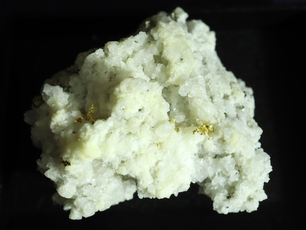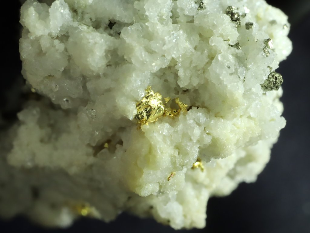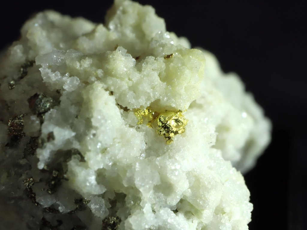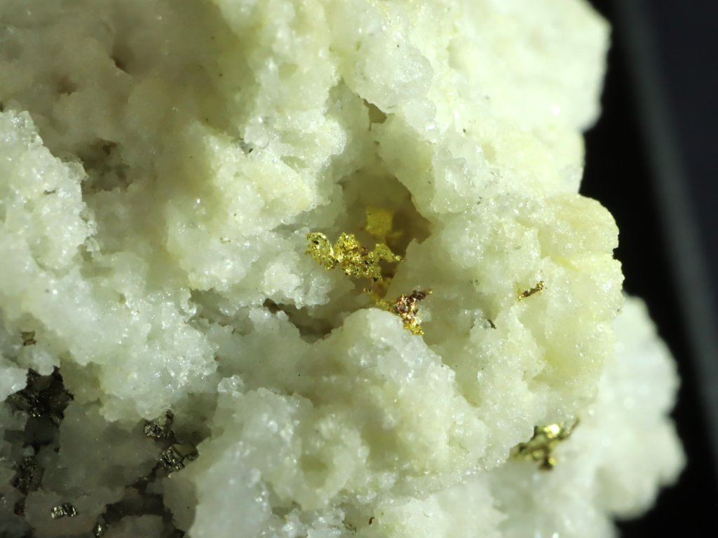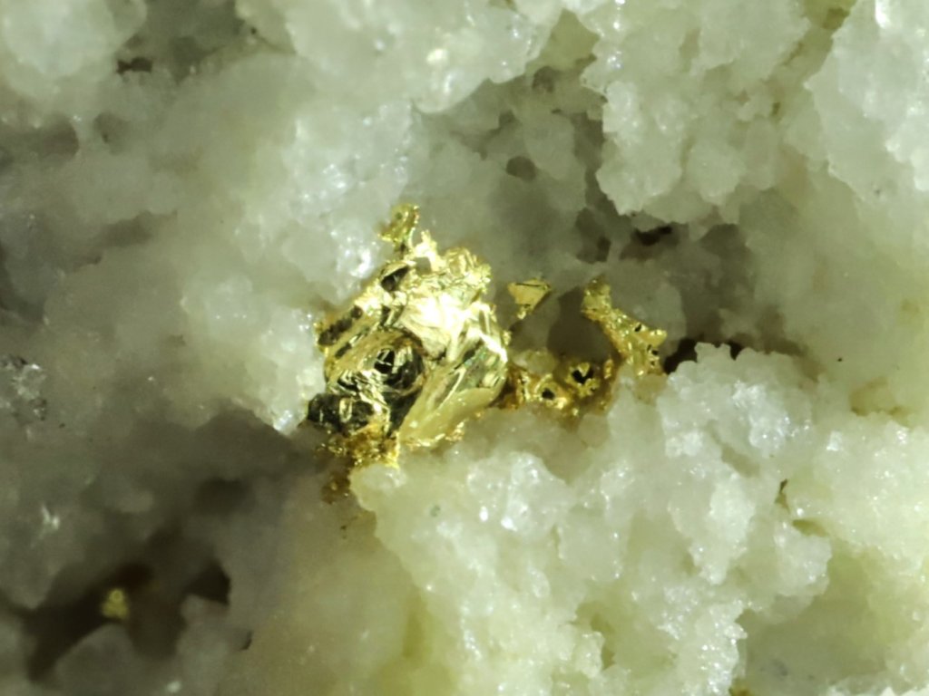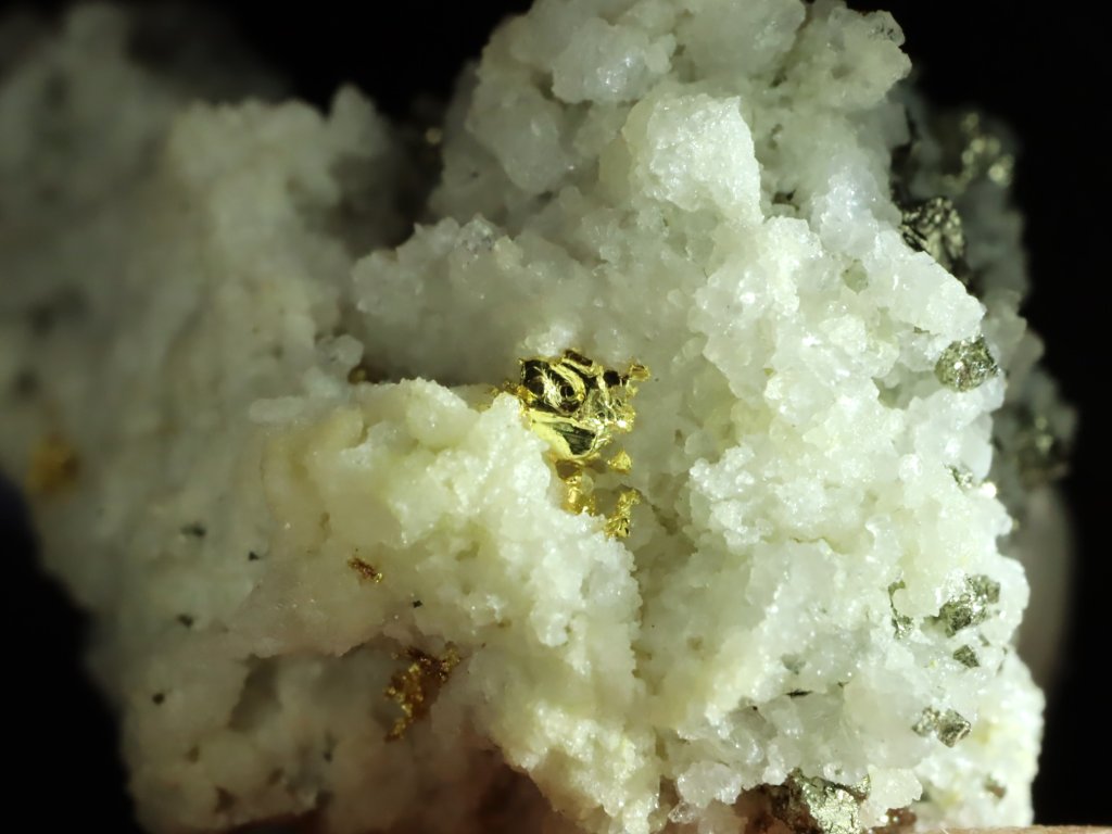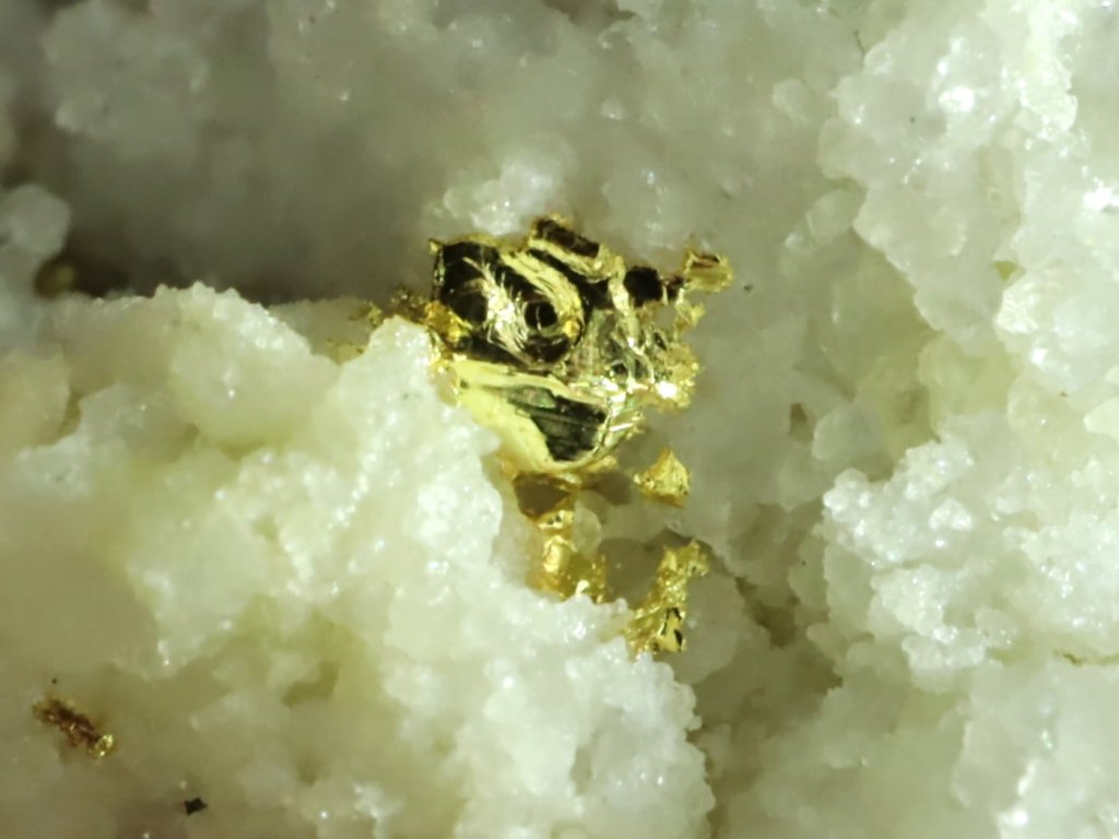 Zlatinky, zlaté plíšky, keříčky či nugetky většinou nejsou pouhým okem na podobných vzorcích úplně dobře viditelné či patrné a mnohdy je i velice obtížné je na vzorku (podložkové hornině) vůbec najít či spatřt. Tento konkrétní vzorek však patří k těm skutečně hodnotnějším a zlaté keříčky / plíšky zde mají slušnou velikost , krásnou žlutou barvu i lesk, takže je lze dobře pozorovat a kochat se jimi i při běžném prohlížení okem. Pokud však chcete vidět opravdové detaily například zlatých keříčků, je potřeba si vzít na pomoc lupu či kvalitní fotoaparát s makro objektivem a funkcí lupy.