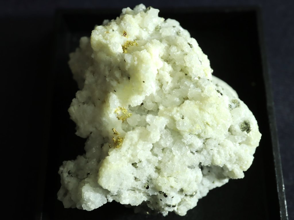 Všechny zlatinky na vzorku snadno rozpoznáte podle jejich typické sytě žluté barvy a lesku.