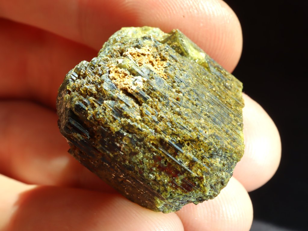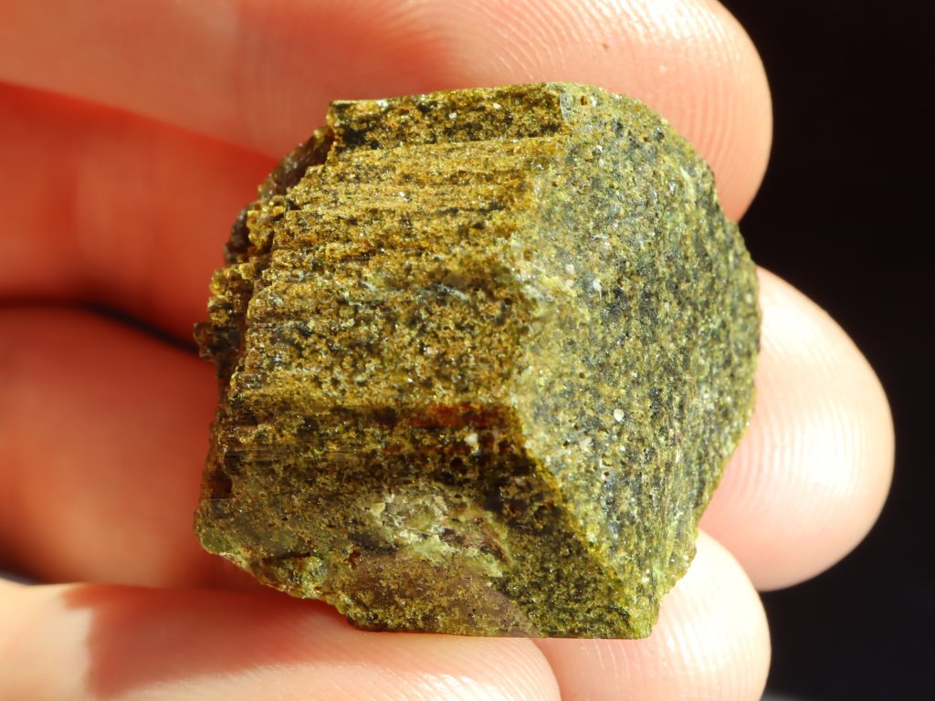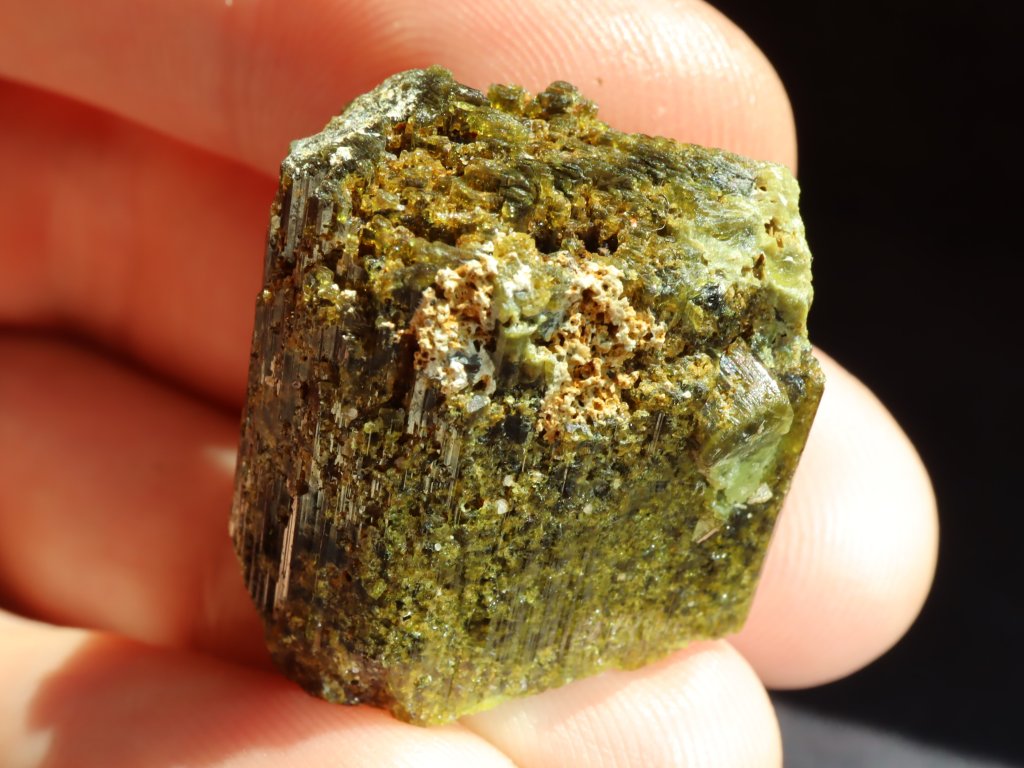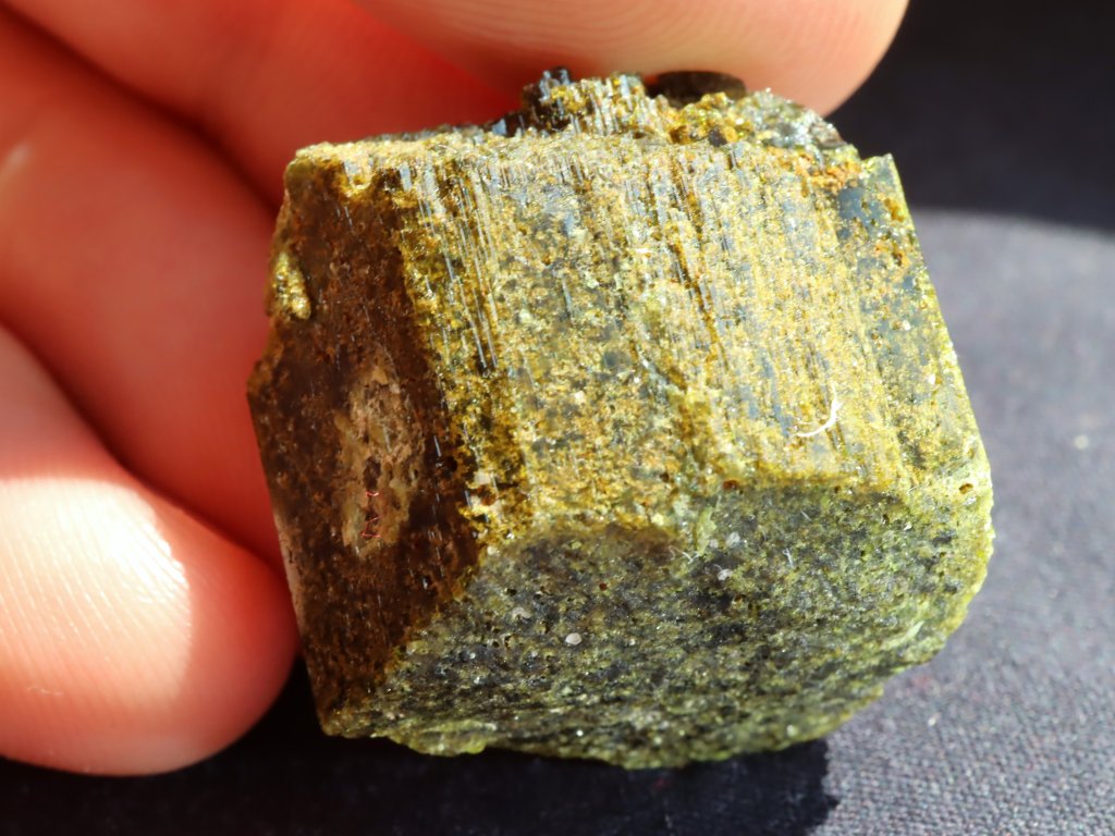 Pokud však epidot nasvítí sluneční paprsky nebo ještě lépe světlo silnější baterky, kamínek se z větší části pěkně rozzáří brčálově zelenými odstíny místy s olivovými či jablkovými tóny.