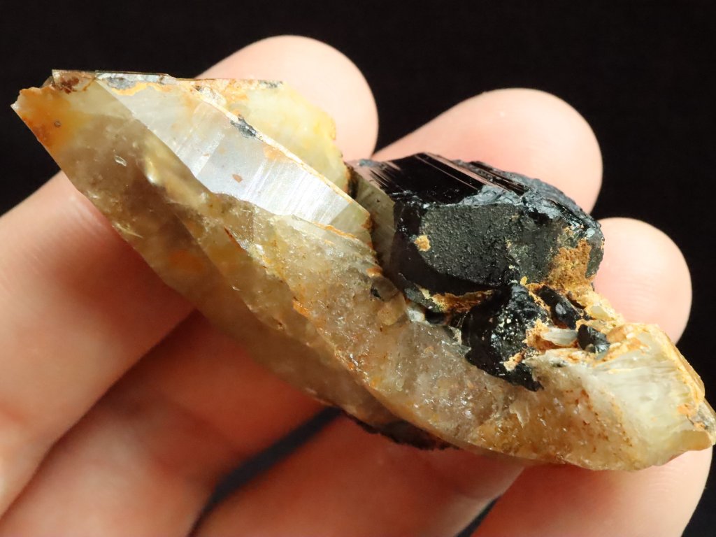 Černý turmalín narostlý na krystalové záhnědě / křemeni