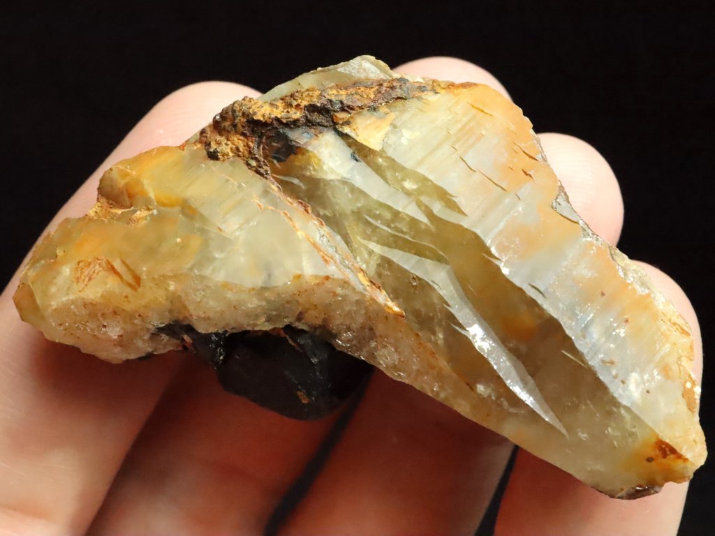 Jedná se o část krystalu kouřové záhnědy v kombinaci s mléčným až šedým křemenem. Povrch je pak místy decentně pokrytý slabým povlakem hnědo-oranžového limonitu.