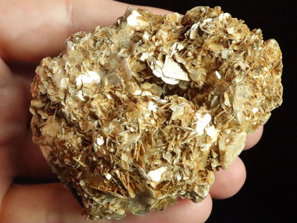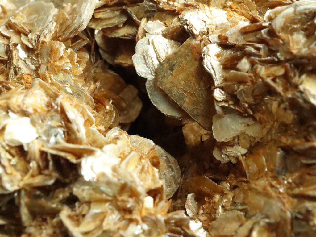 Základ tohoto kamene tvoří estetický blok lupenitých krystalků muskovitu, tento nerost je známý spíše pod svým neodborným názvem jako lesklá stříbrná slída. Z obou stran tedy můžete obdivovat bohazou ukázku těchto lupínků.