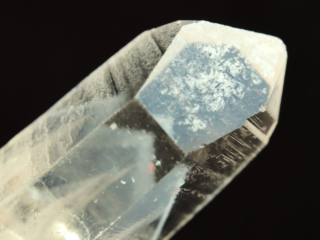 Pokud detailněji prozkoumáte špici krystalu, respektive uspořádání a tvary jednotlivých plošek / fazet, zjistíte, že kamínek lze zařadit mezi vzácné Mistrovské krystaly a to konkrétně tzv. Channelingový krystal. - Více o tomto jedinečném Mistrovském krystalu se dočtete níže v našem samostatném článku.