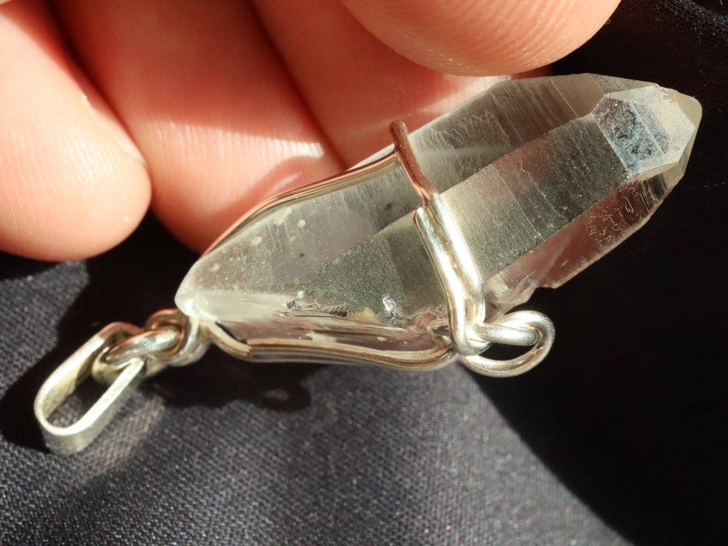 Uchycení kamene ve stříbře je čistě ruční práce, nejedná se tedy o žádnou strojní velkovýrobu a každý přívěsek je originál. Křišťál navíc není vrtaný ani žádným způsobem přilepený. Kamínek je pouze precizně opleten stříbrným drátkem, který pro něj vytvoří tzv. klícku, ve které bezpečně drží. Dražší přívěsky se navíc pyšní složitějším a propracovanějším řemeslným zpracováním či jsou decentně zdobené například kapičkami stříbra či jinými zajímavostmi. Mnohdy jsou v nich také zasazeny unikátní kameny.