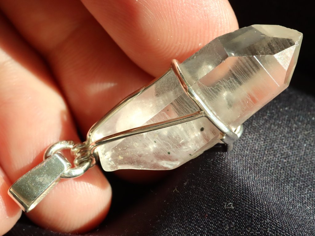 Exkluzivní stříbrný přívěsek s velmi vzácným a estetickým krystalkem křišťálu.
