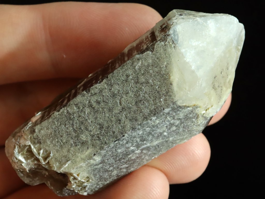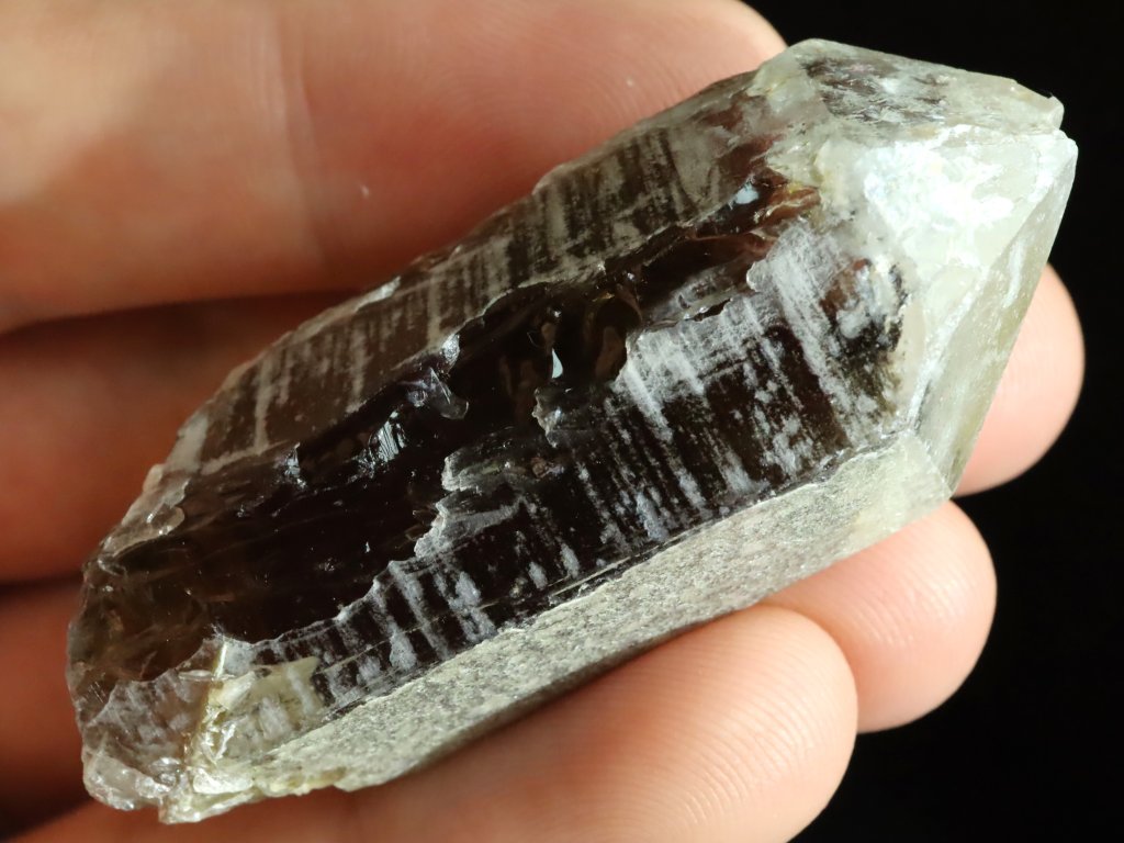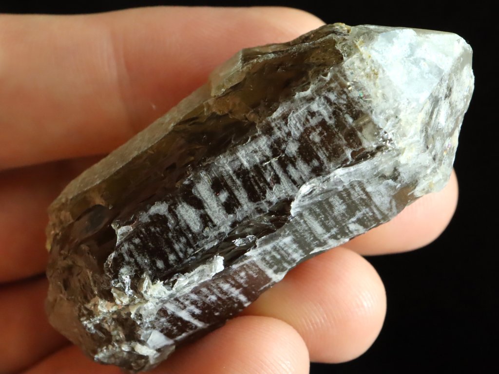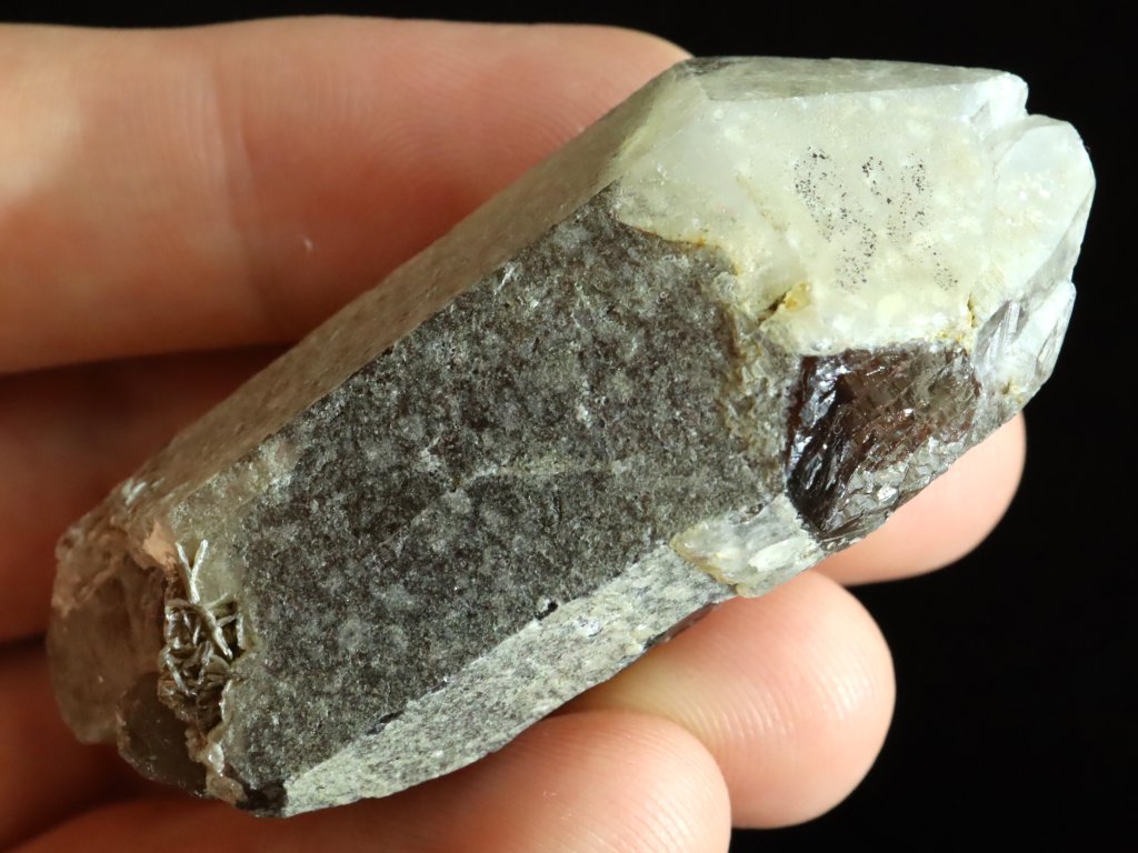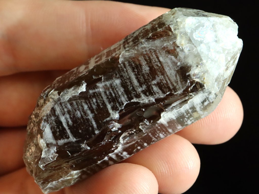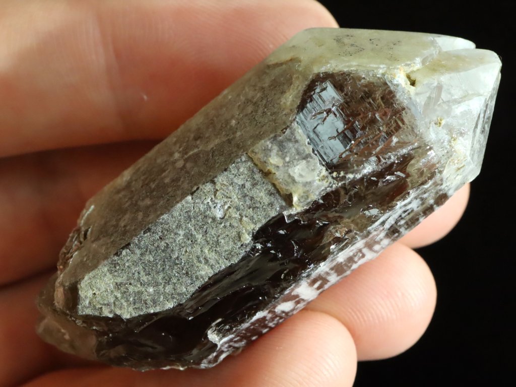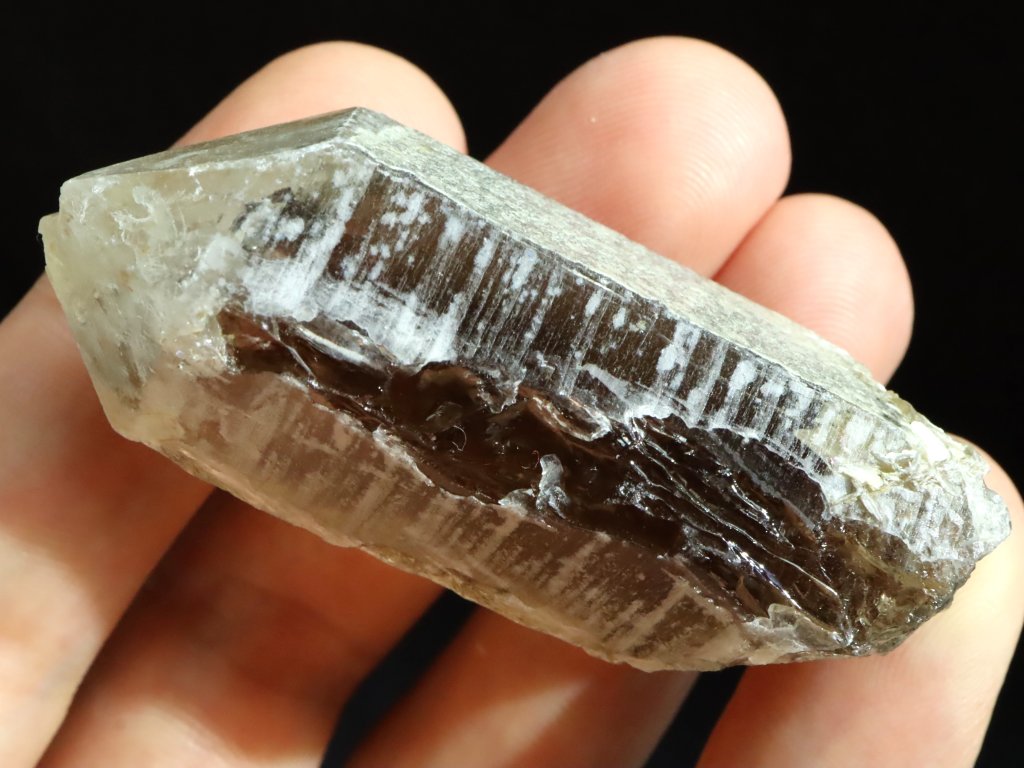 Drahokamově čistý krystal záhnědy s povlakem mléčného křemene