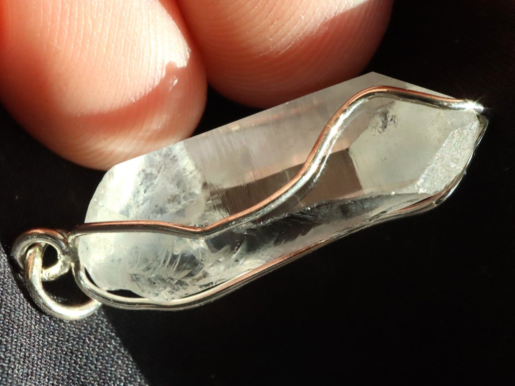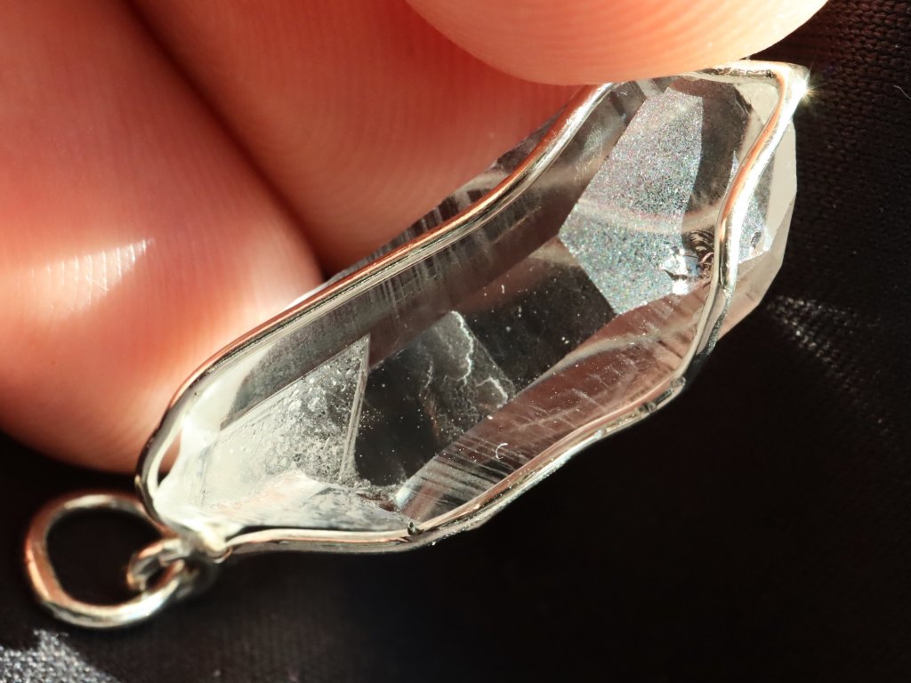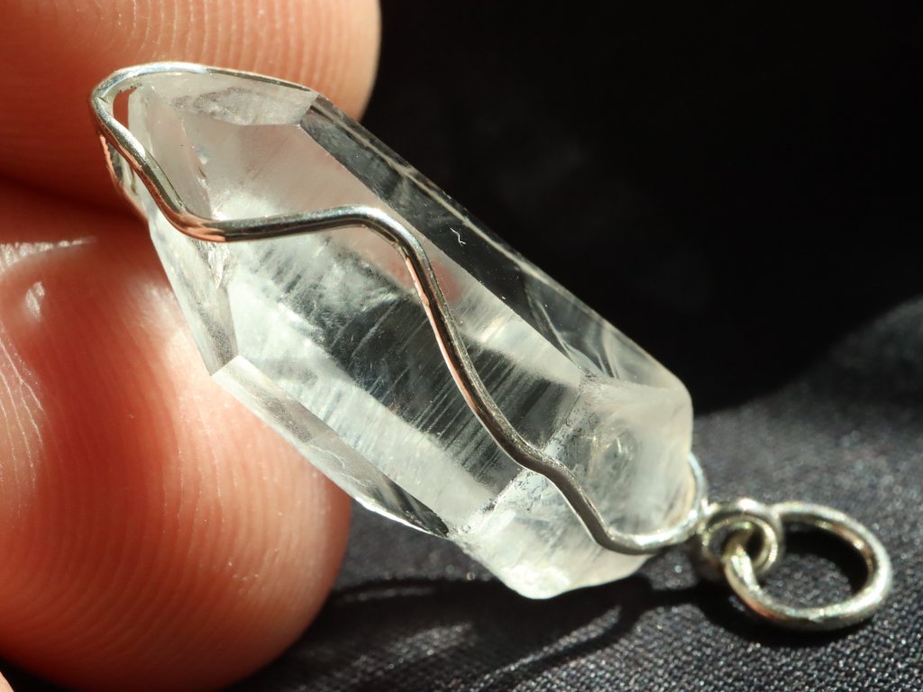 Drahokamově čistý krystalek křišťálu ve stříbrném přívěsku