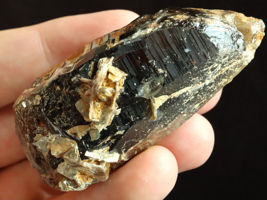 Jedná se o krystal s délkou 6 centimetrů, který má krásně zachovalé obvodové stěny. Samotná špice se pak zachovala částečně - v jedné pasáži je odřená / ťuklá. I přes to, že tento kousek není zcela dokonalý, vypadá velmi atraktivně.