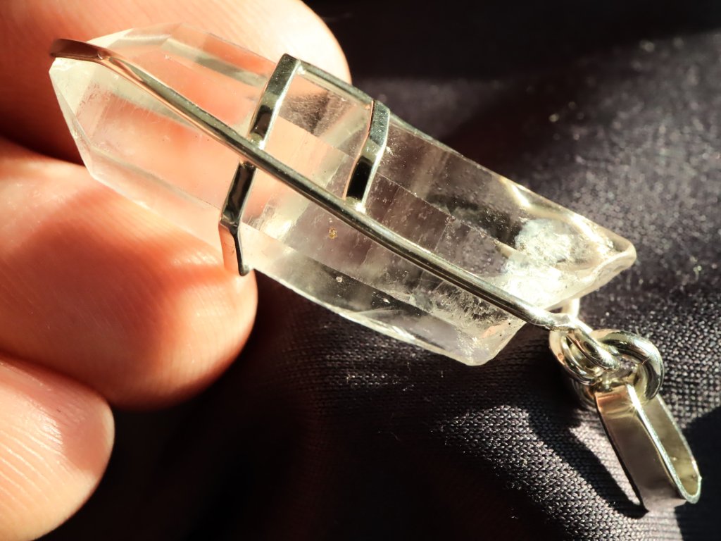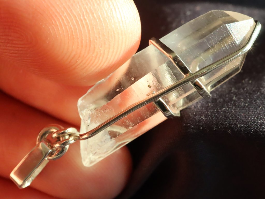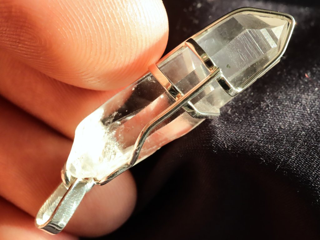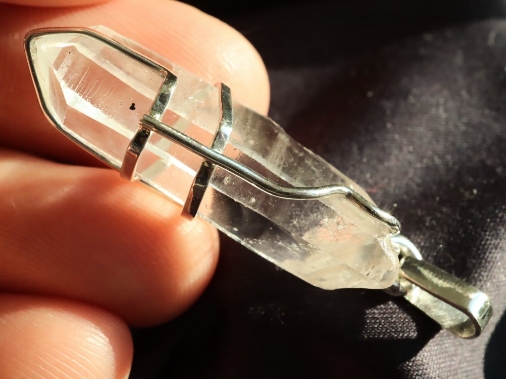 V tomto přívěsku najdete estetický krystalek křišťálu, který má nádherně zachovalé obvodové stěny i samotnou špičku.