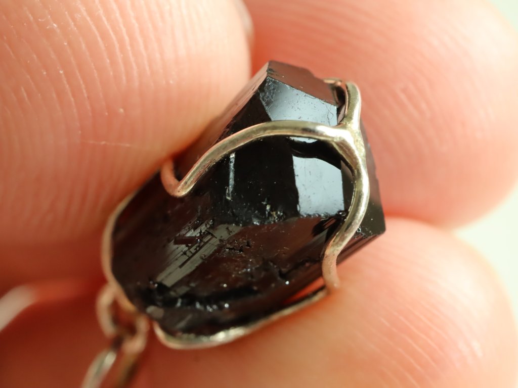 Drobný černý turmalín s estetickým ukončením - stříbrný přívěsek