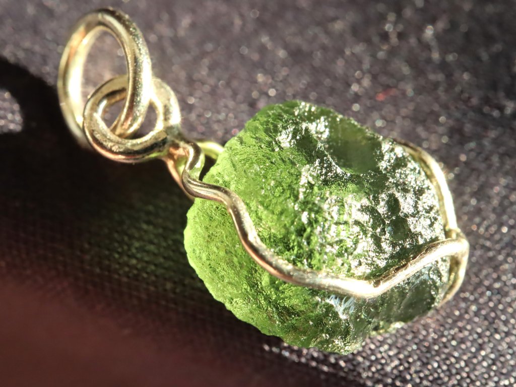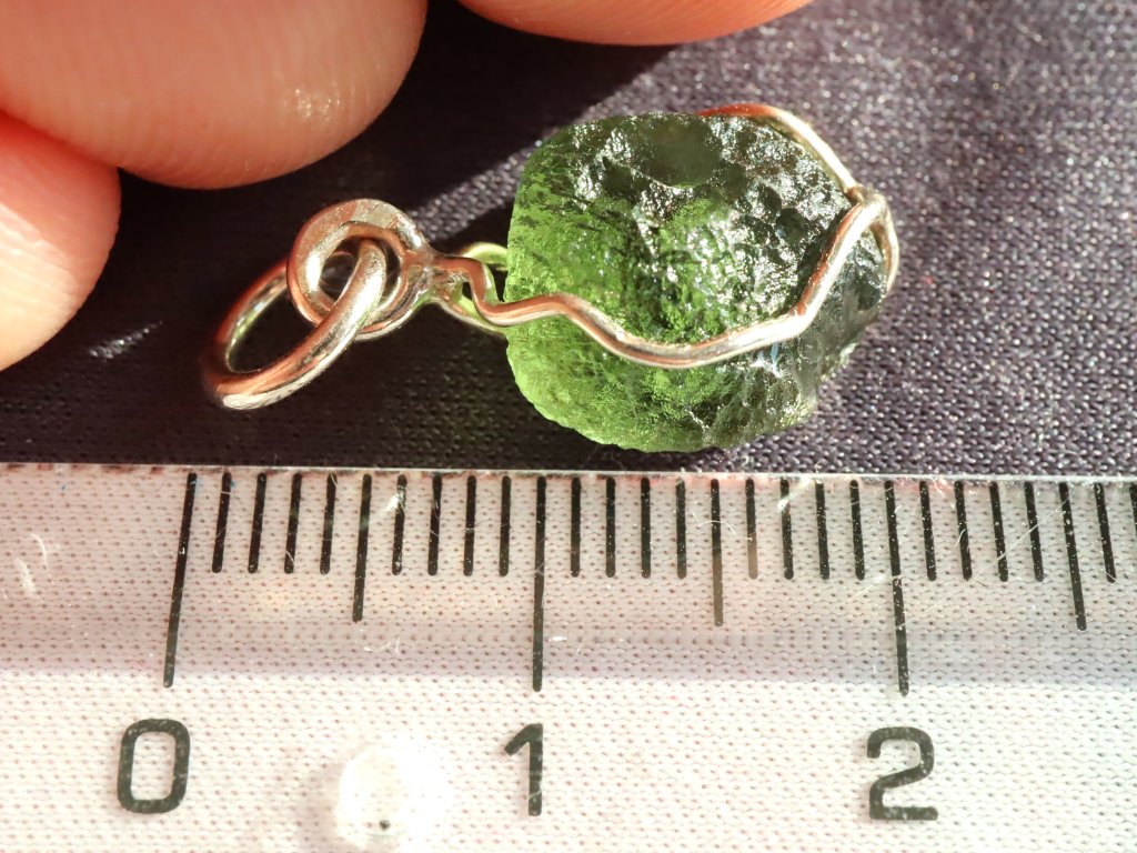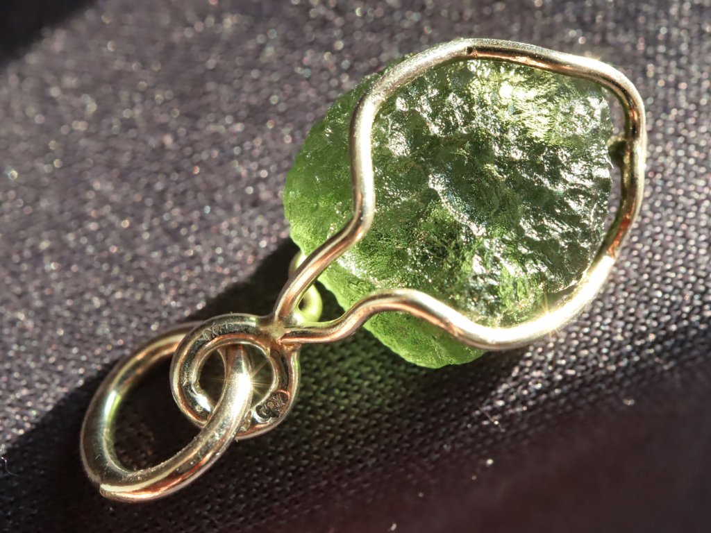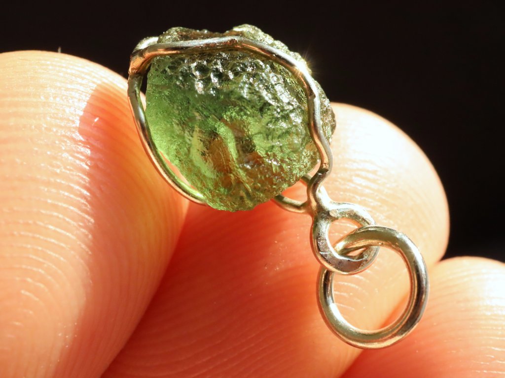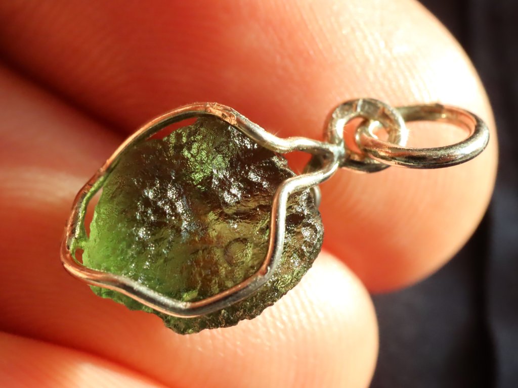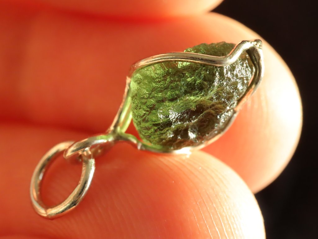 Drobný vltavínek z jižních Čech zasazený ve stříbrném přívěsku