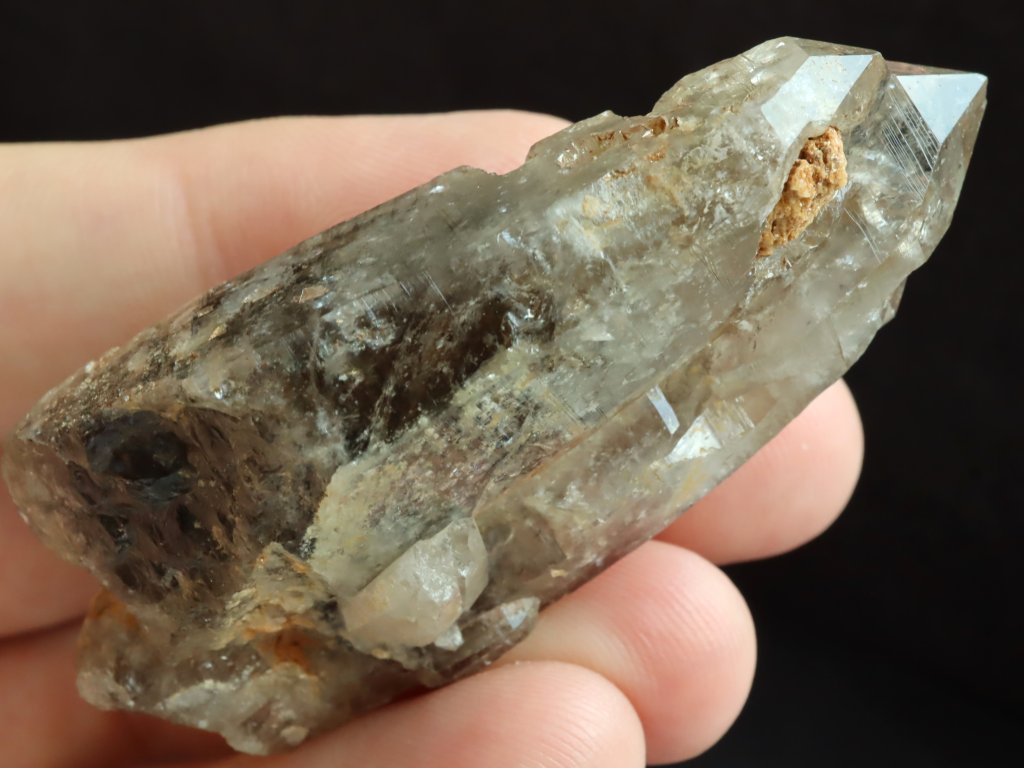 Jedná se o srostlici dvou krystalů kouřové záhnědy, jejíž délka je solidních takřka 7 centimetrů.