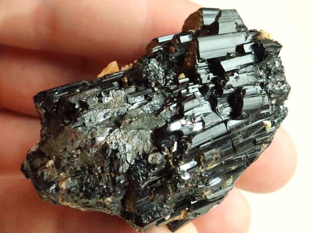 Jde o poctivý slušně velký špalek černého turmalínu, který vás hned na první pohled upoutá svým nevšedním a velmi estetickým stupňovitým růstem. Turmalín působí dojmem, jakoby se skládal z množství menších podlouhlých špalíčků.