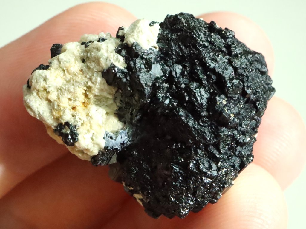 Na atraktivitě přidává i přítomnost bílého albitu, protože kontrast černé a bílé barvy je u minerálů vždy krásný a zajímavý.