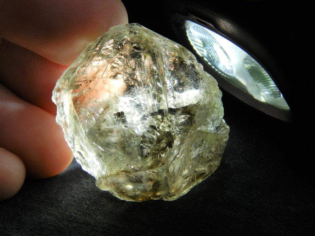 Záhněda je celá krásně průsvitná (sluníčkem nebo baterkou) což je výborně zachyceno na poslední fotografii. Díky převážně lesklému povrchu lze při tomto prosvícení kamene i skvěle nahlédnout dovnitř a pozorovat tak jeho pestrý vnitřní svět.