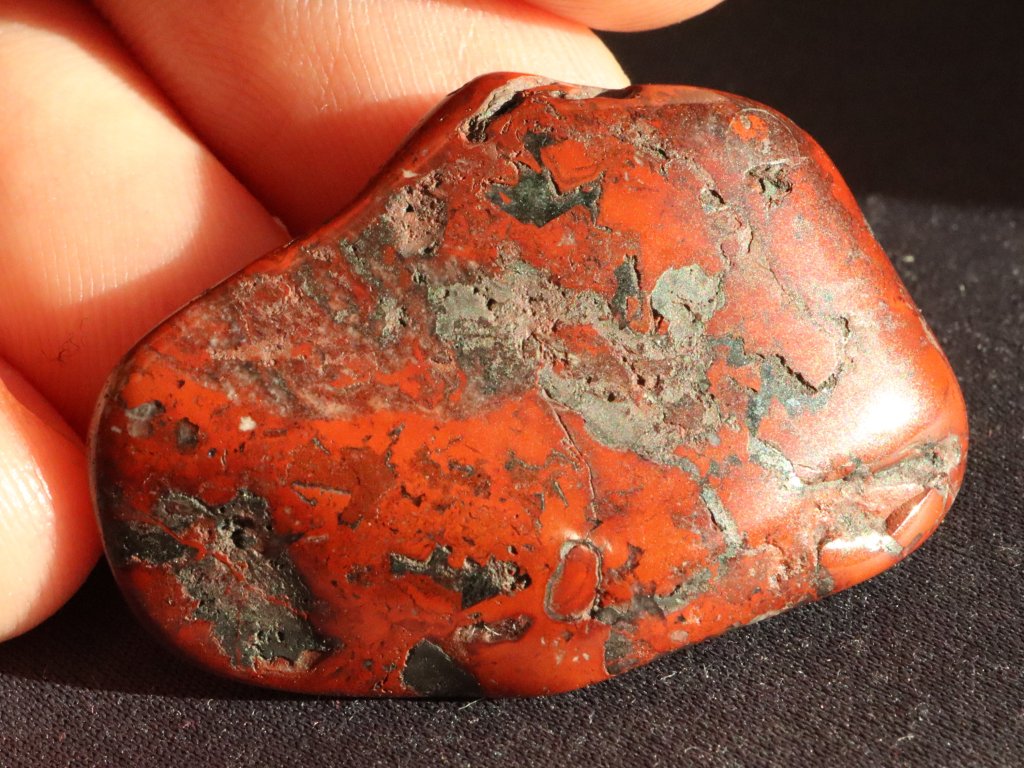 Jedná se o velmi pohledný tromlovaný kousek jaspisu, který má tvar valounku.