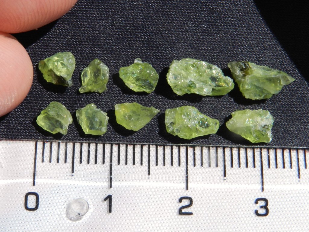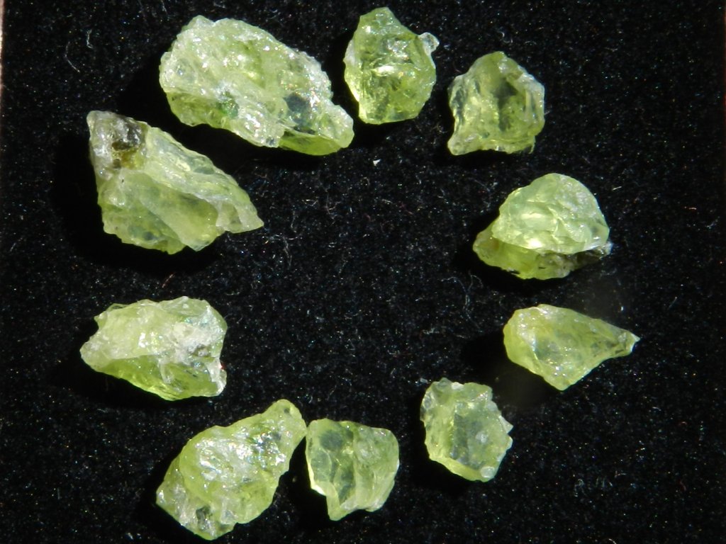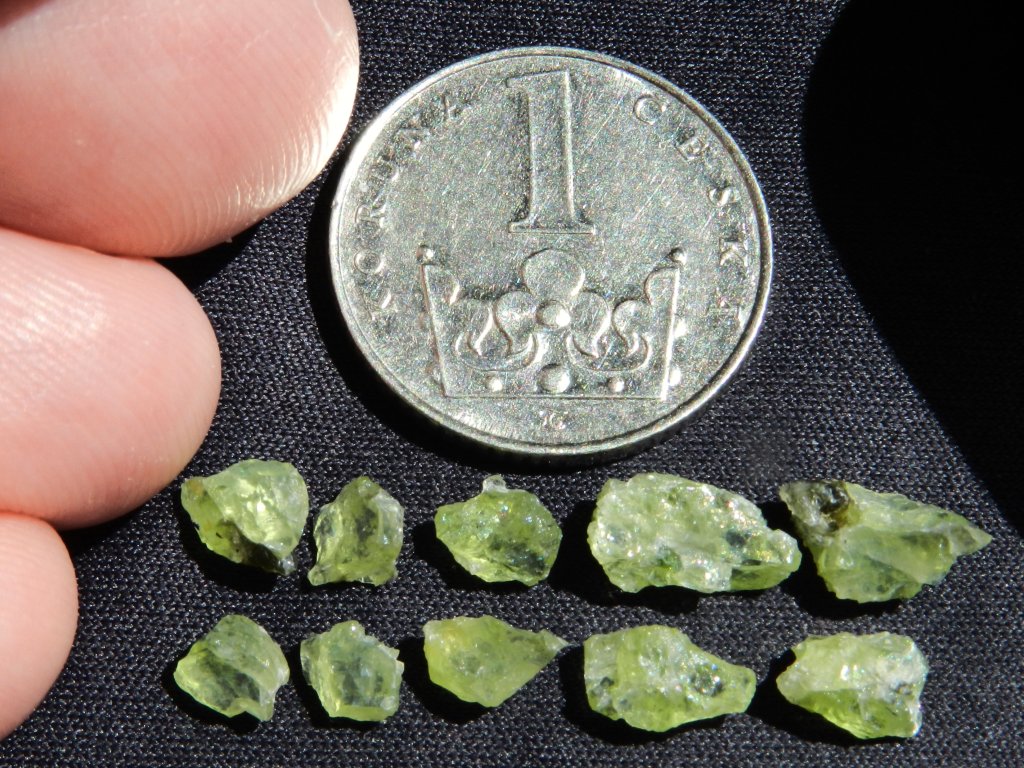 V této sadě se nachází deset zrn olivínu s velikostí / délkou cca 4 - 8 milimetrů.