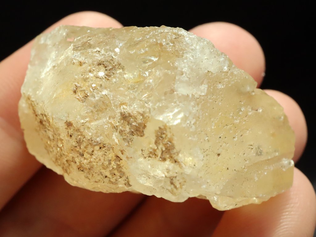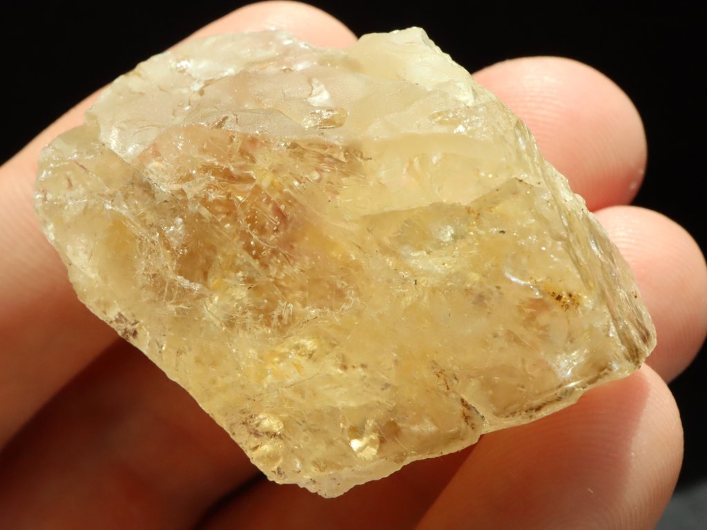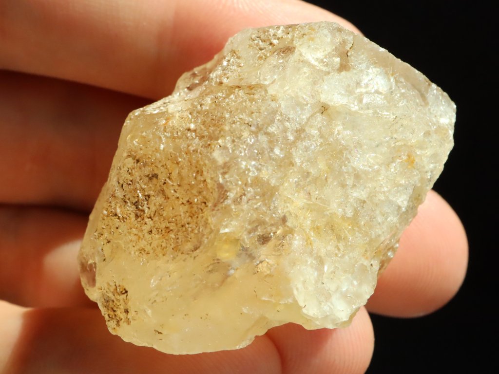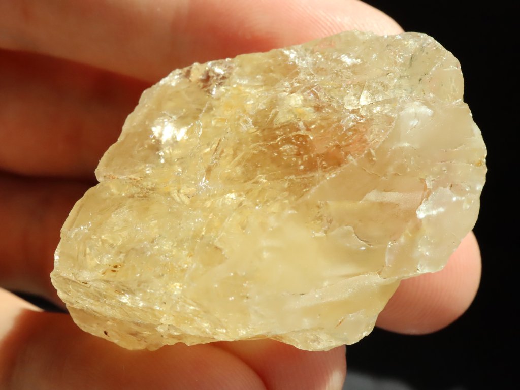Při prosvícení kamínku sluníčkem či baterkou můžete lesklou stranou solidně nahlédnout do skromného vnitřního světa citrínu, kde se ukrývá množství různých ůkazů (inkluzí) v podobě mlhovinek a peříček.