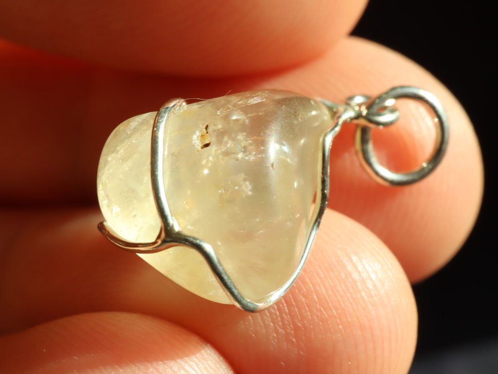 Jemně žlutý tromlovaný valounek českého citrínu ve stříbře
