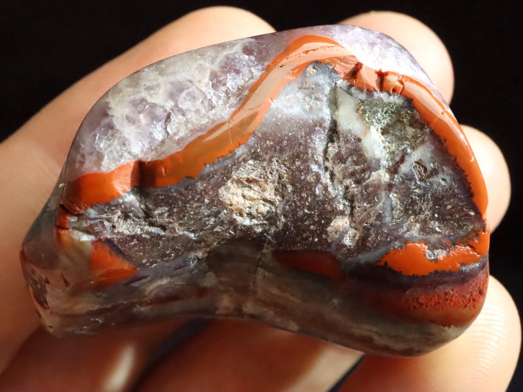 Krásná kresba oranžového jaspisu s ametystem a křemenem