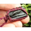 Krásně rýhovalý špalek černého turmalínu v macramé náhrdelníku
