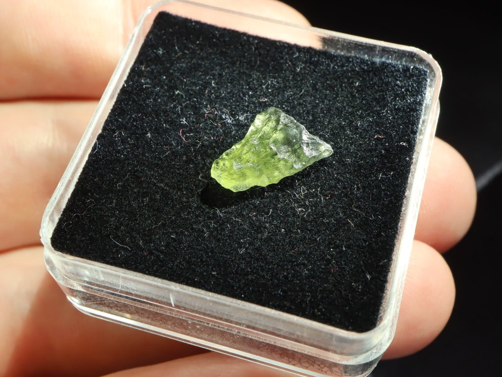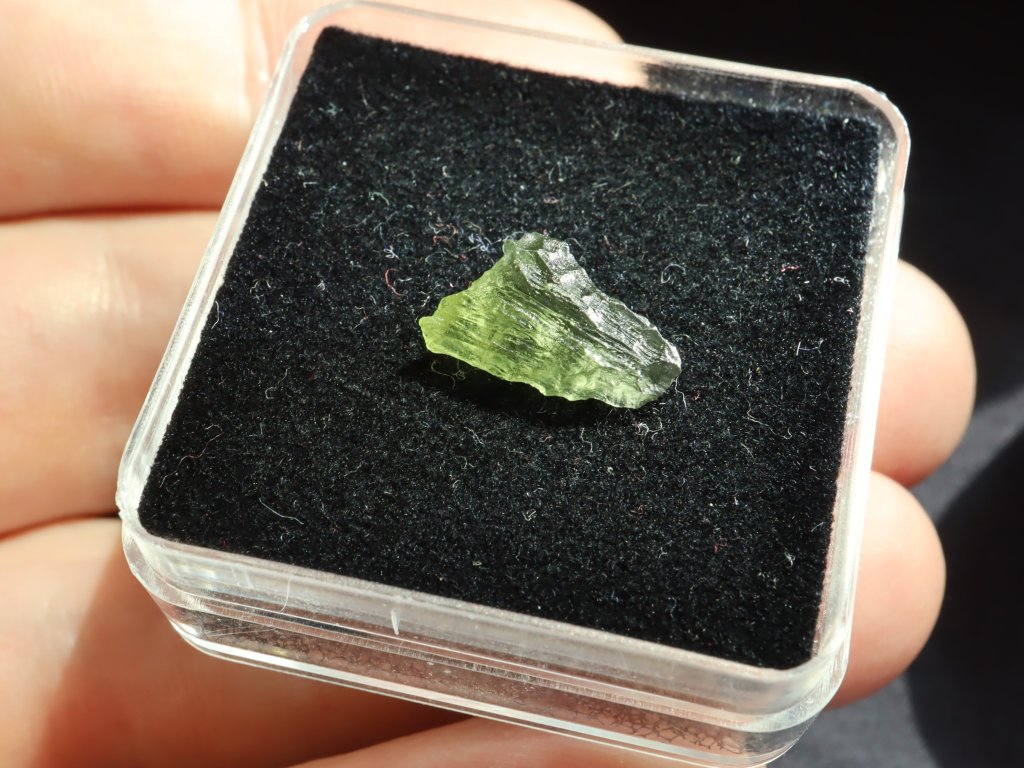 Vltavín obdržíte v kvalitní (hodnotné) uzaviratelné průhledné plastové krabičce s polstrovaným (černým nebo bílým) vnitřkem - viz. foto. Kamínek se vám tak nejen nikam nezatoulá, ale zároveň se jím budete moci přes průhledné plastové víčko krabičky i skvěle kochat.