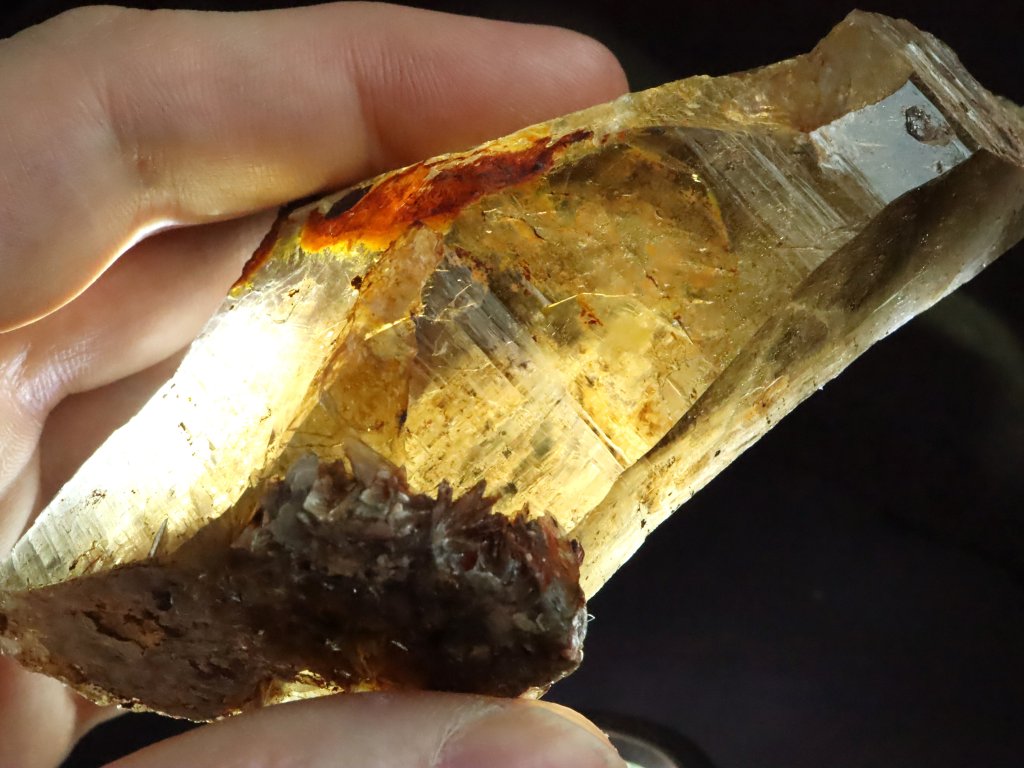 Při prosvícení morionu sluníčkem či baterkou se pak mlžete kochat krásným vnitřním světem, který ukrývá nejenom vysokou až drahokamovou čistotu, ale také půvabné mlhovinové závoje a jedno větší peříčko.