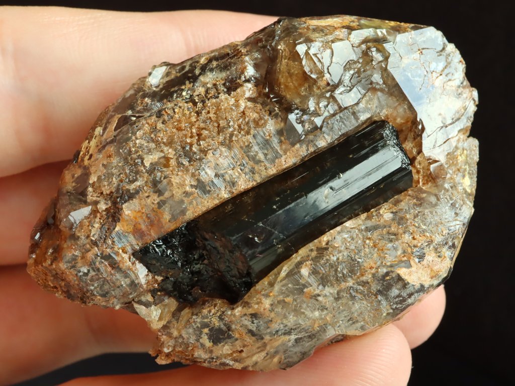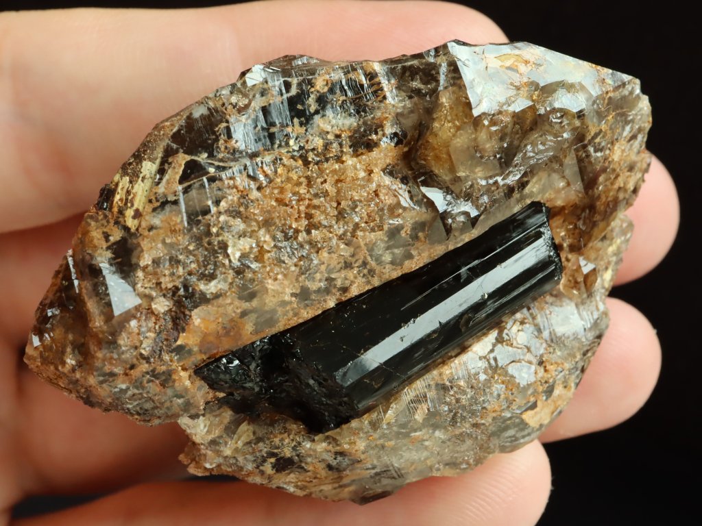 Vzorek díky tomu působí nejen velmi originálně, ale je atraktivní jak pro sběratele, tak i ty z vás, kteří se zajímáte o energii drahých kamenů - morion a černý turmalín jsou totiž z ezoterického hlediska velmi silná dvojka.