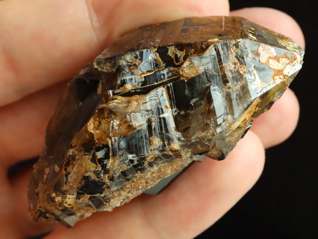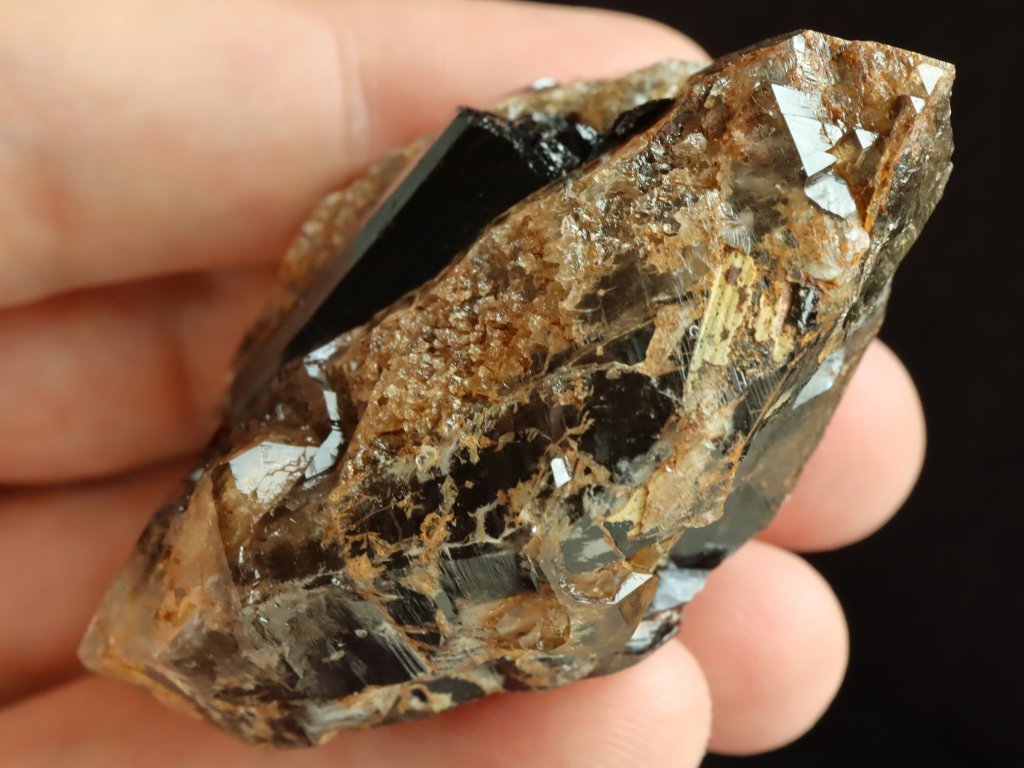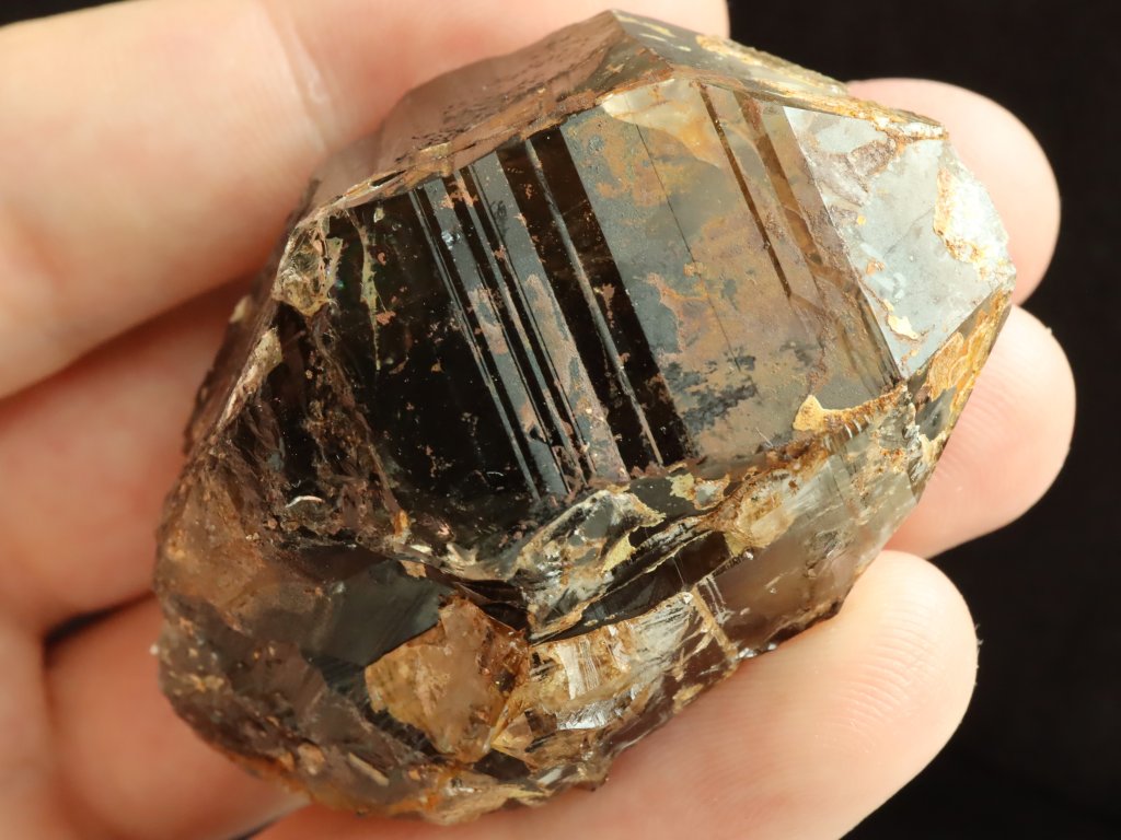 Unikátní vzorek temné až černé záhnědy tzv. morion pocházející z vyhlášeného kamínkářského naleziště Kněževes (Vysočina).