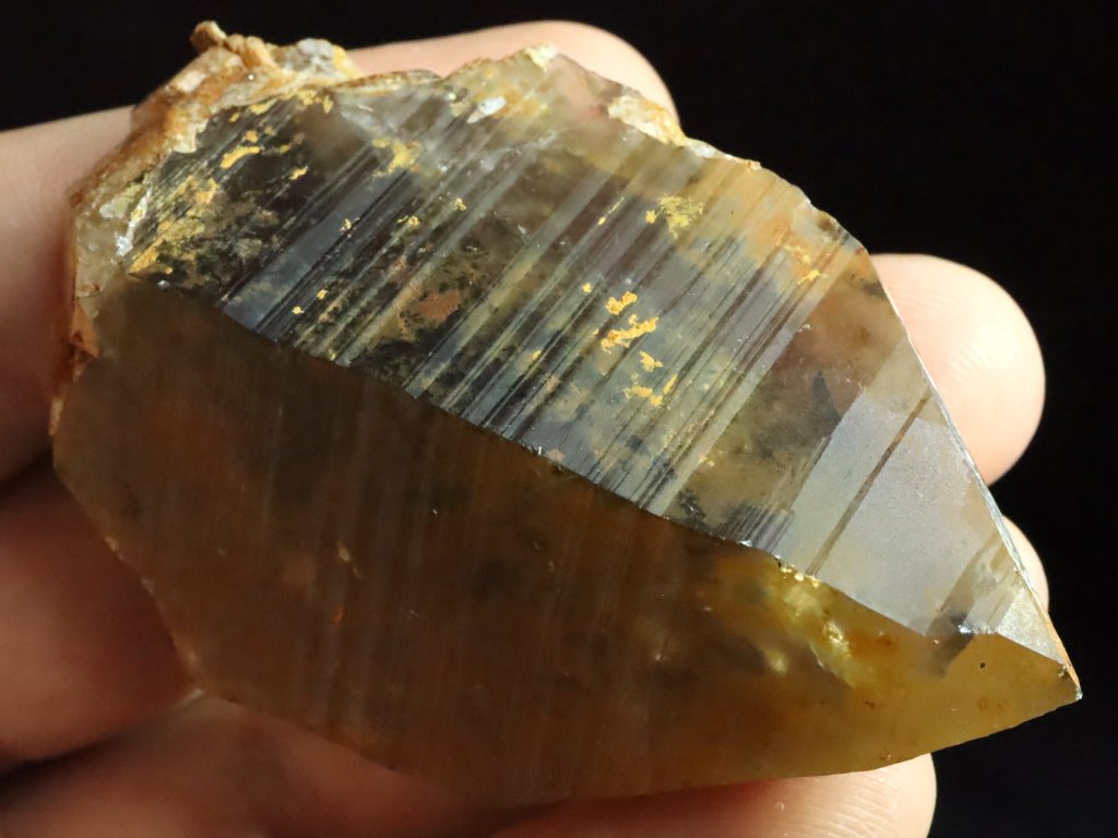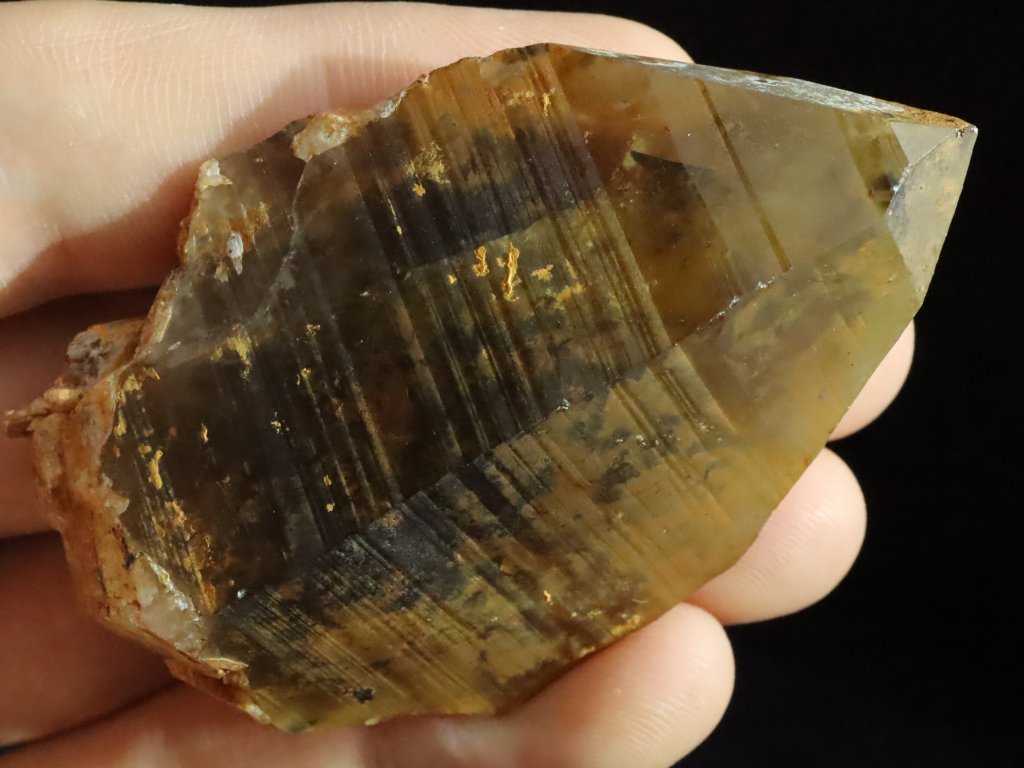 Krystal záhnědy s povlakem / patinou oranžového limonitu