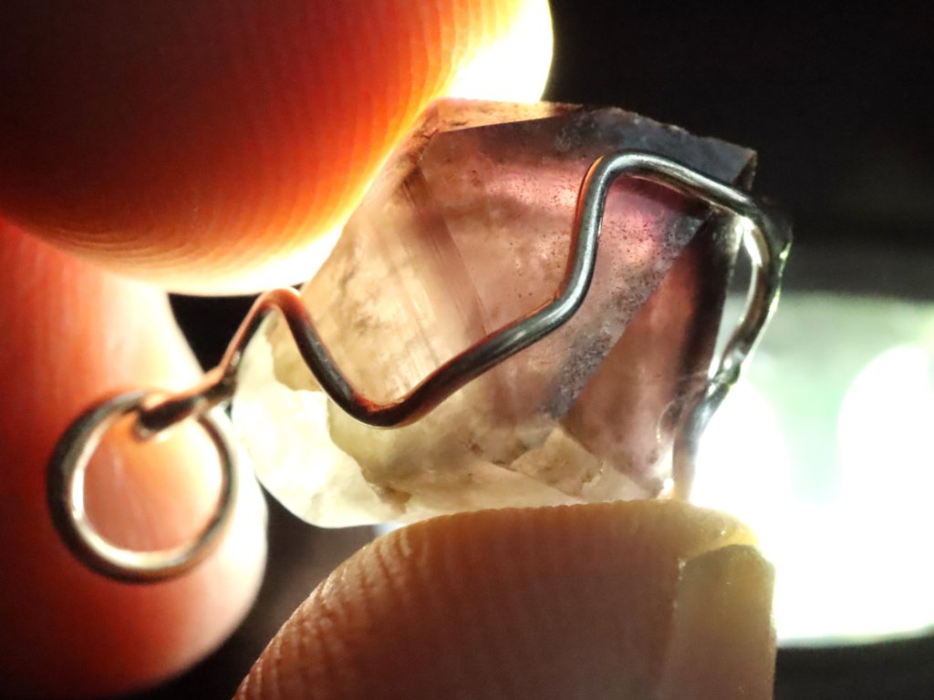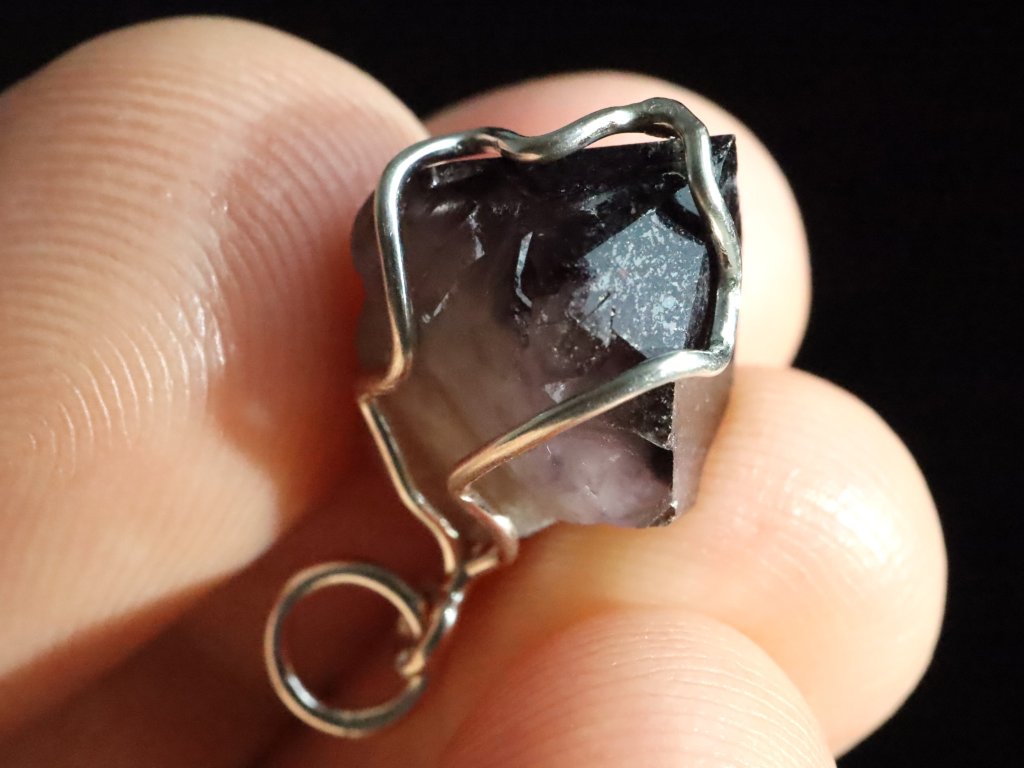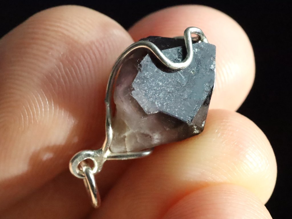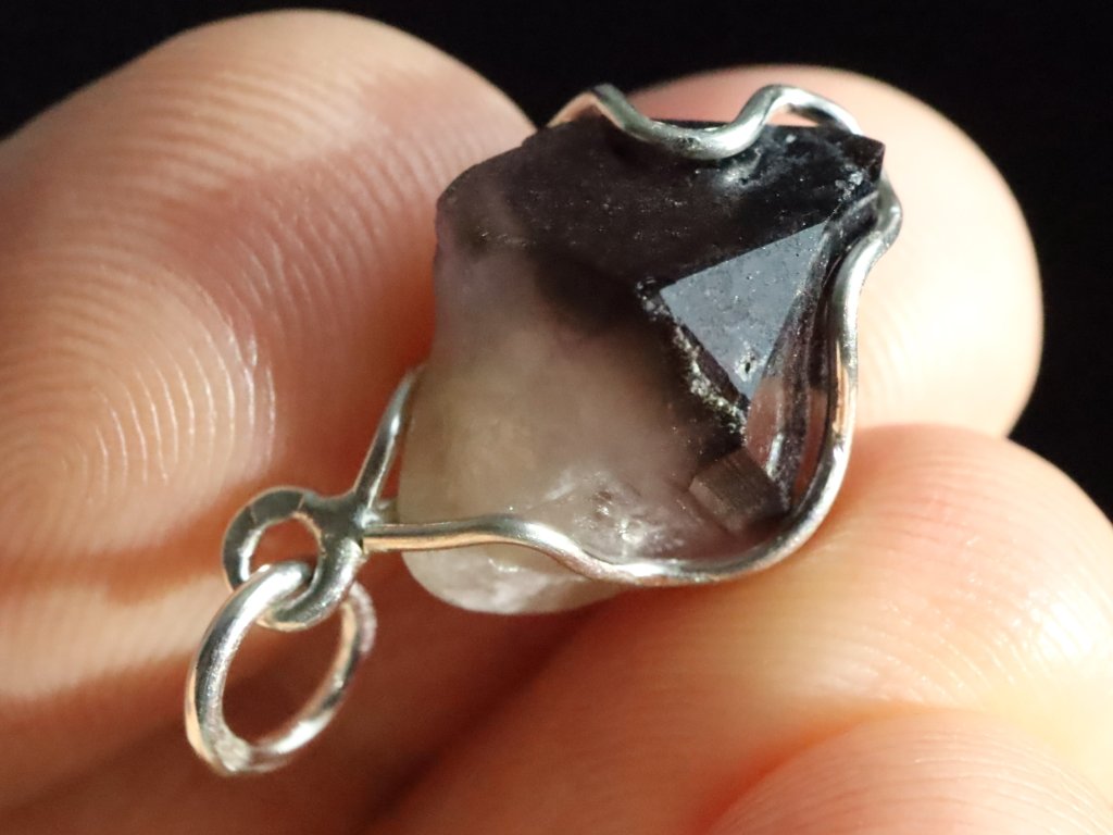 Krystalek / špička morionu s nádechem ametystu - stříbrný přívěsek
