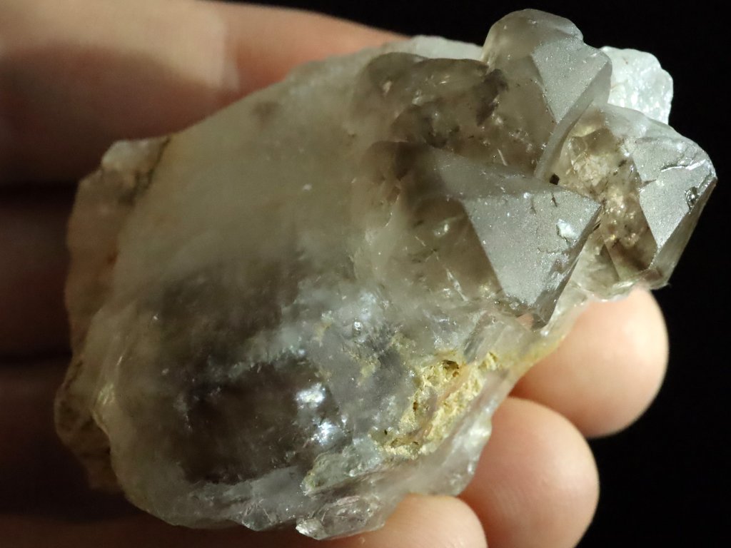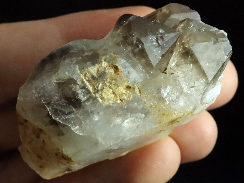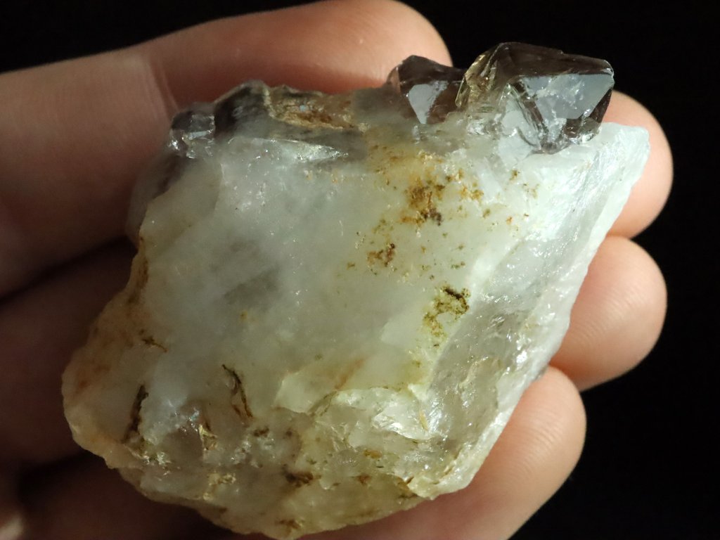 Na křemenné podložce zde můžete obdivovat několik hezky zachovalých krystalků / špiček kouřových záhněd.