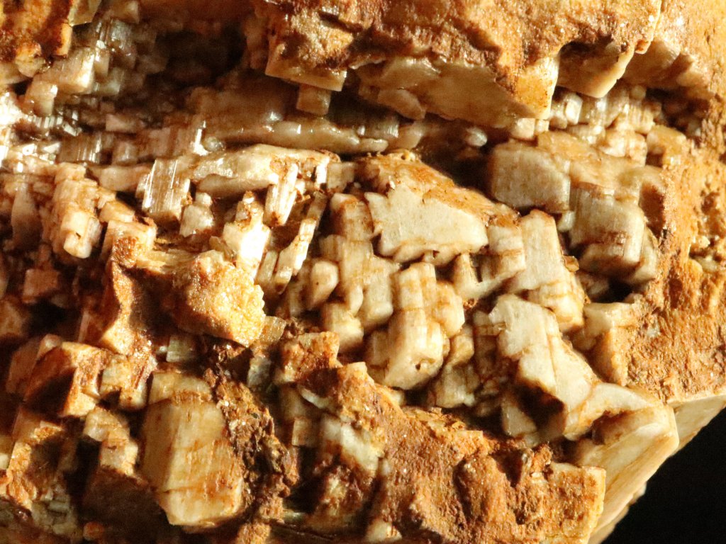 Tvoří jej tzv. krystalový albit, tedy kostky a krychle které jsou vzájemně různorodě srostlé.