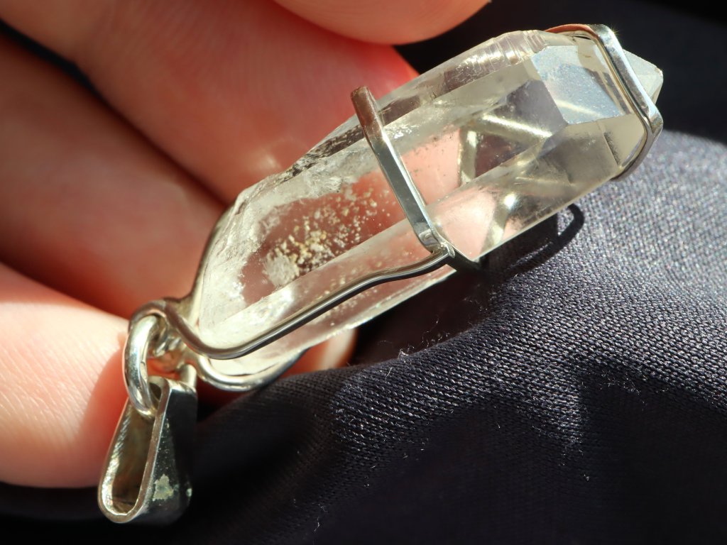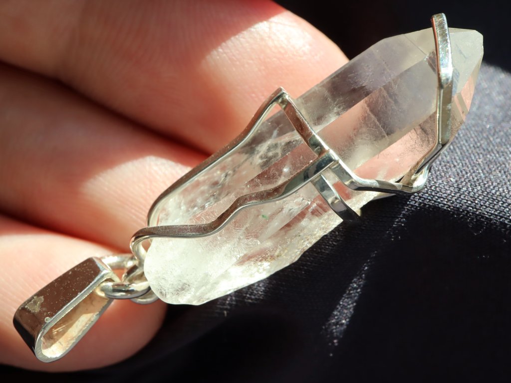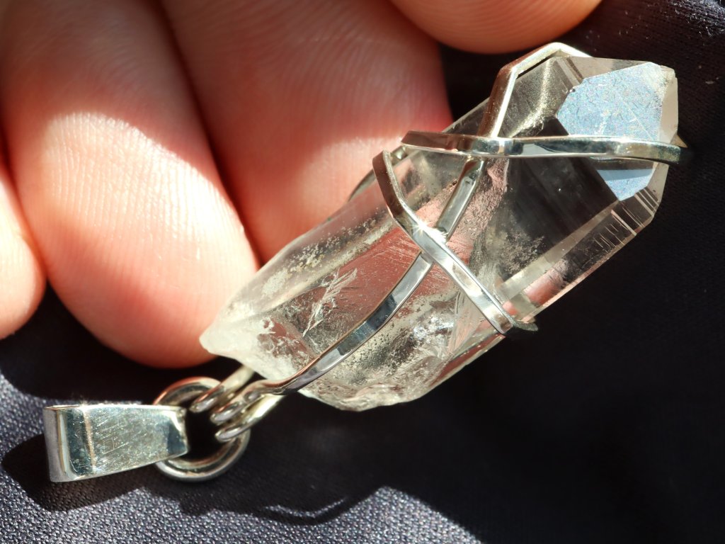 Ledově bílý křišťál ve stříbrném přívěsku - Channelingový krystal