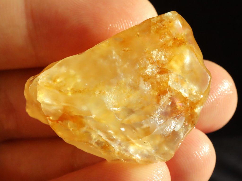 Na sluníčku má kamínek přirozený středně žlutý odstín, nejvíce však zazáří pokud je navíc mokrý. Mokrý citrín jsme pro vás zachytili na úvodních třech fotografiích.