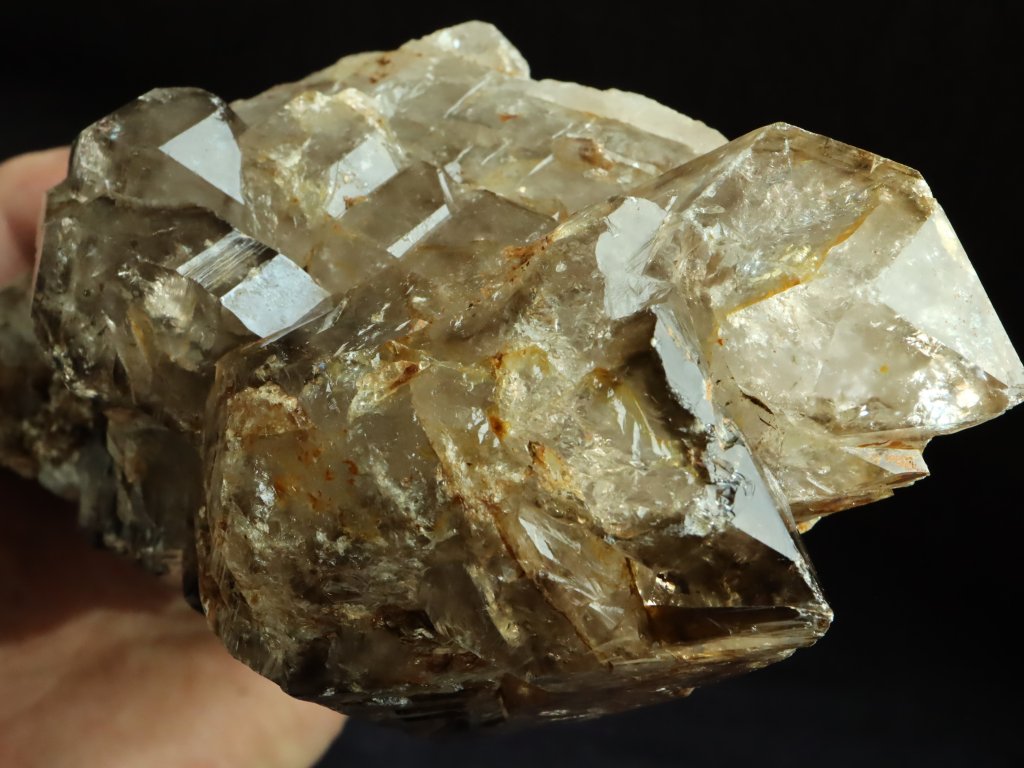Tento majestátní krystal je tedy tzv. oboustranně vyvinutý, na jedné straně má dvě větší špice s elestiálním růstem, na druhé straně je pak pozoruhodně dohojený.