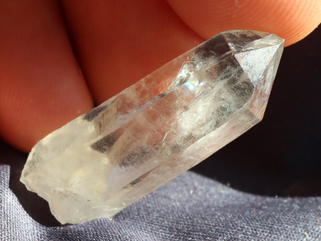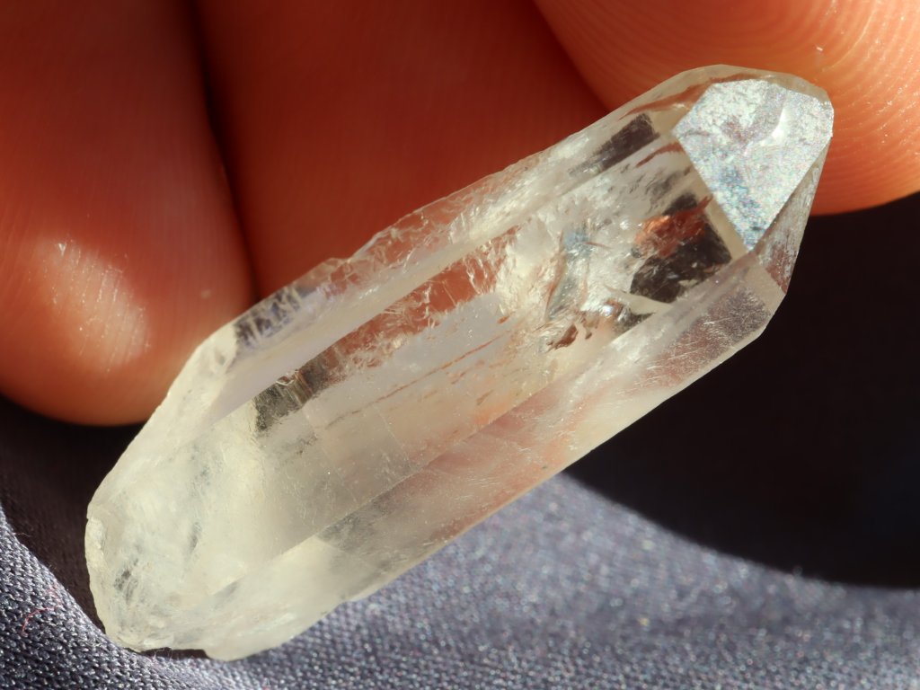Díky lesklému povrchu lze při prosvícení (sluníčkem či baterkou) i dobře nahlédnout do skromného ale pěkného vnitřního světa krystalu, který ukrývá velmi solidní čistotu s několika peříčky a mlhovinkami.