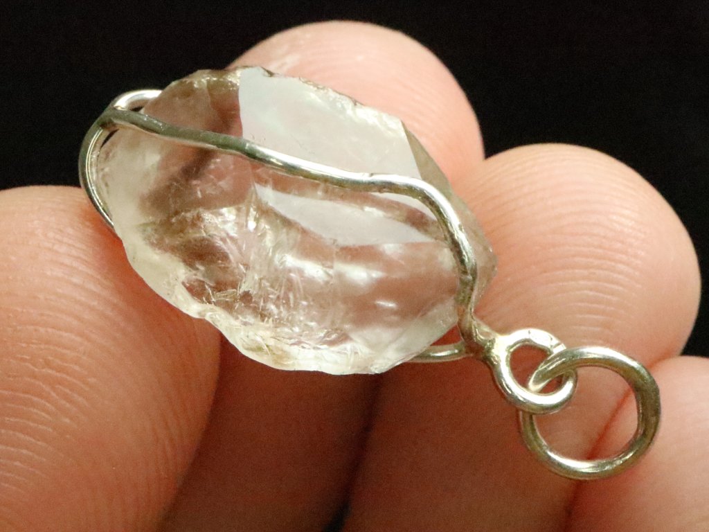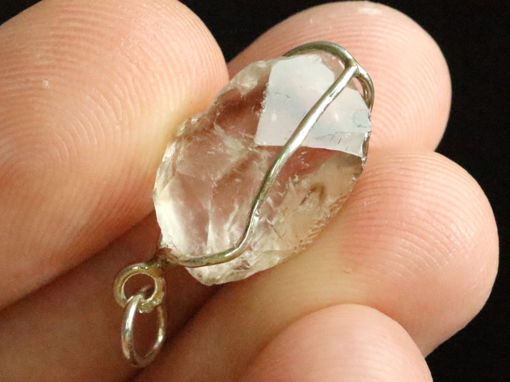 Přívěsek ukrývá pěkný menší zlomek světle kouřové záhnědy, z pohledové strany můžete obdivovat krystalové stěny a plošky.