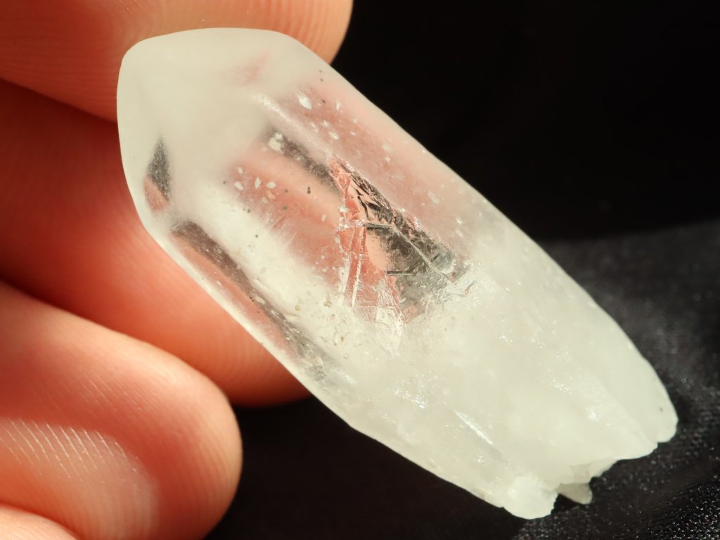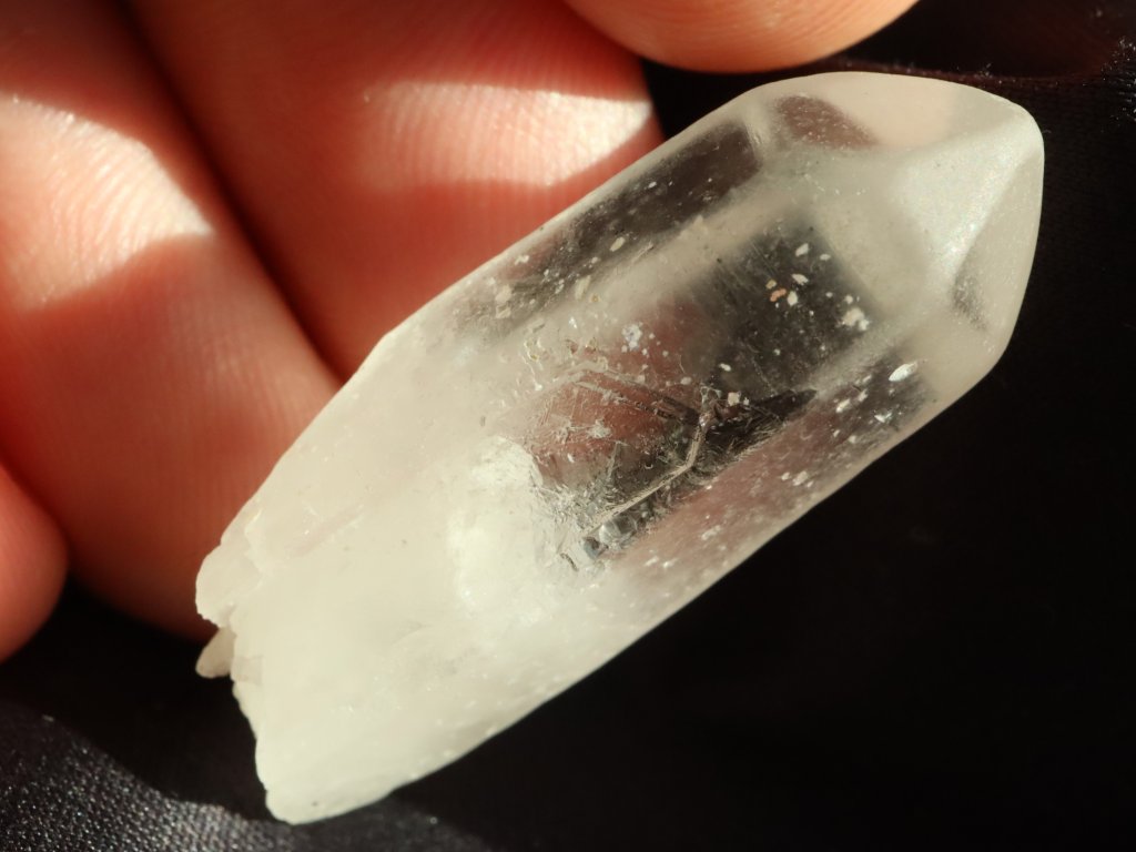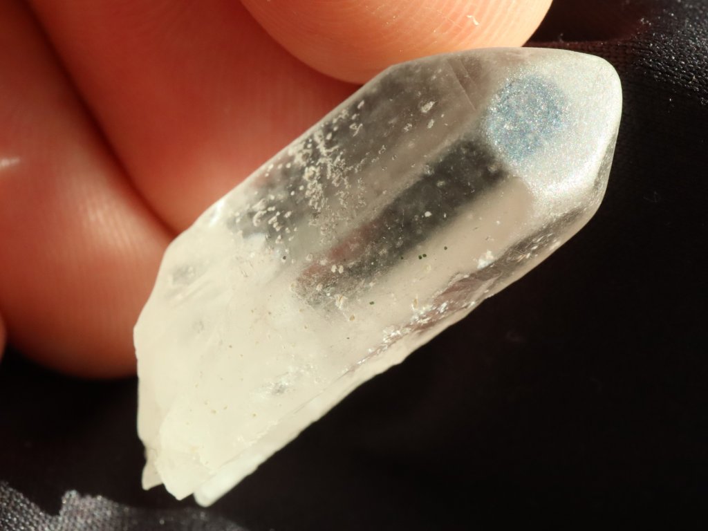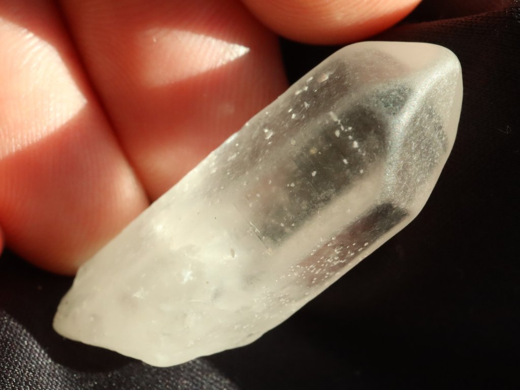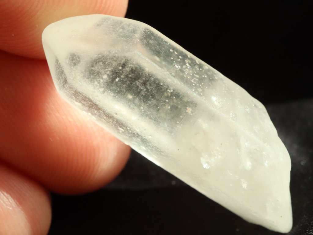 Tento krystal křišťálu je velice dobře zachovalý, pyšní se kvalitním ledově bílým odstínem, vysokou až drahokamovou vnitřní čistotou a také příjemně lehce ohlazenou špičkou.