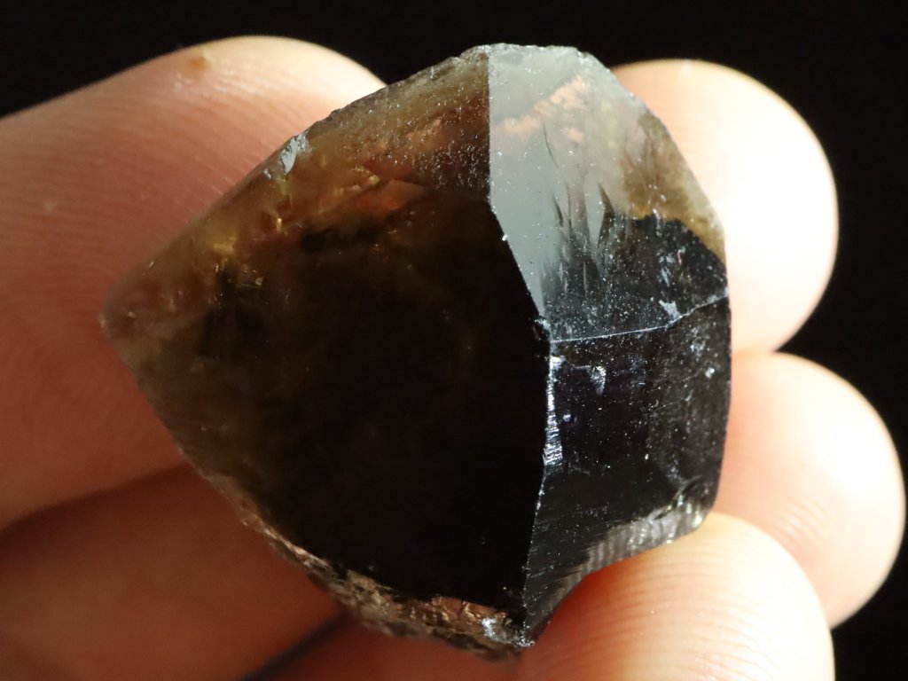 Menší lesklý půlkrystal temného morionu z Vysočiny