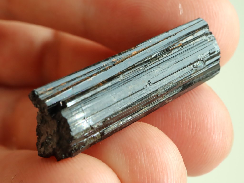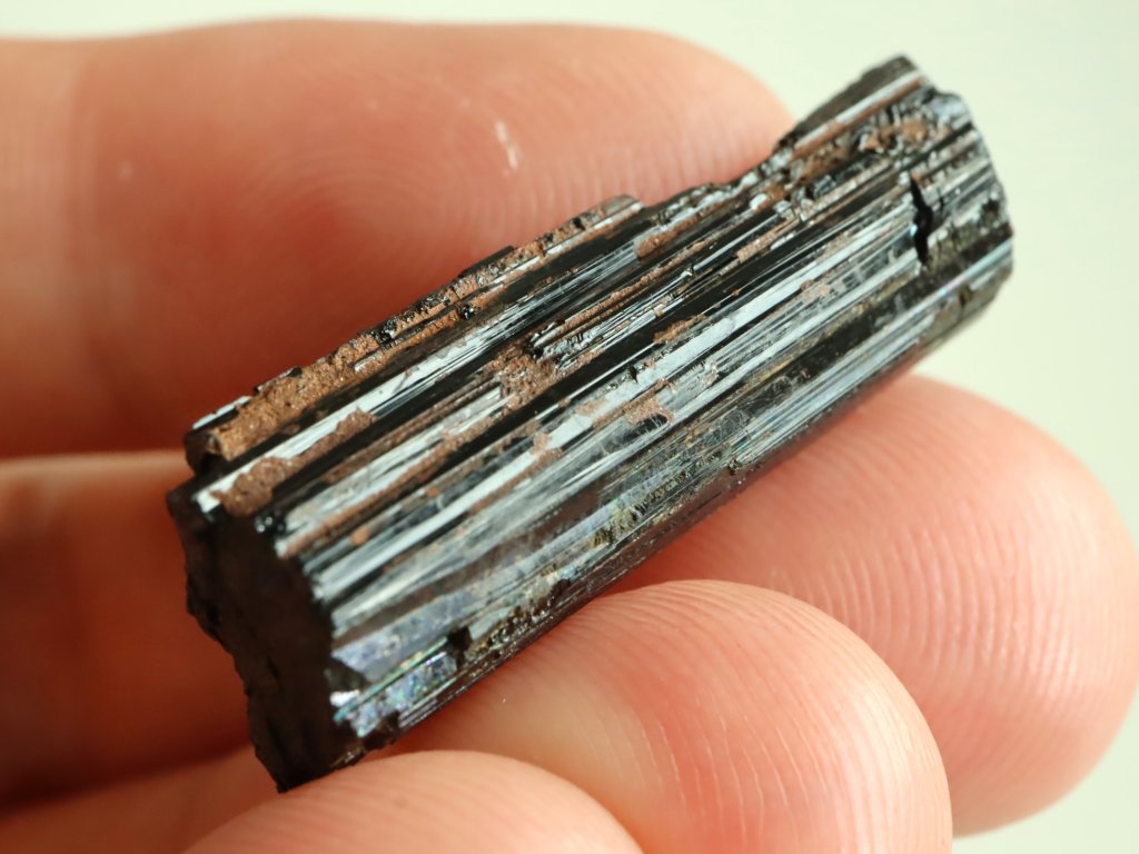 Pěkná ukázka přírodního černého turmalínu skorylu z vyhlášeného šutráckého naleziště Bory (Vysočina).