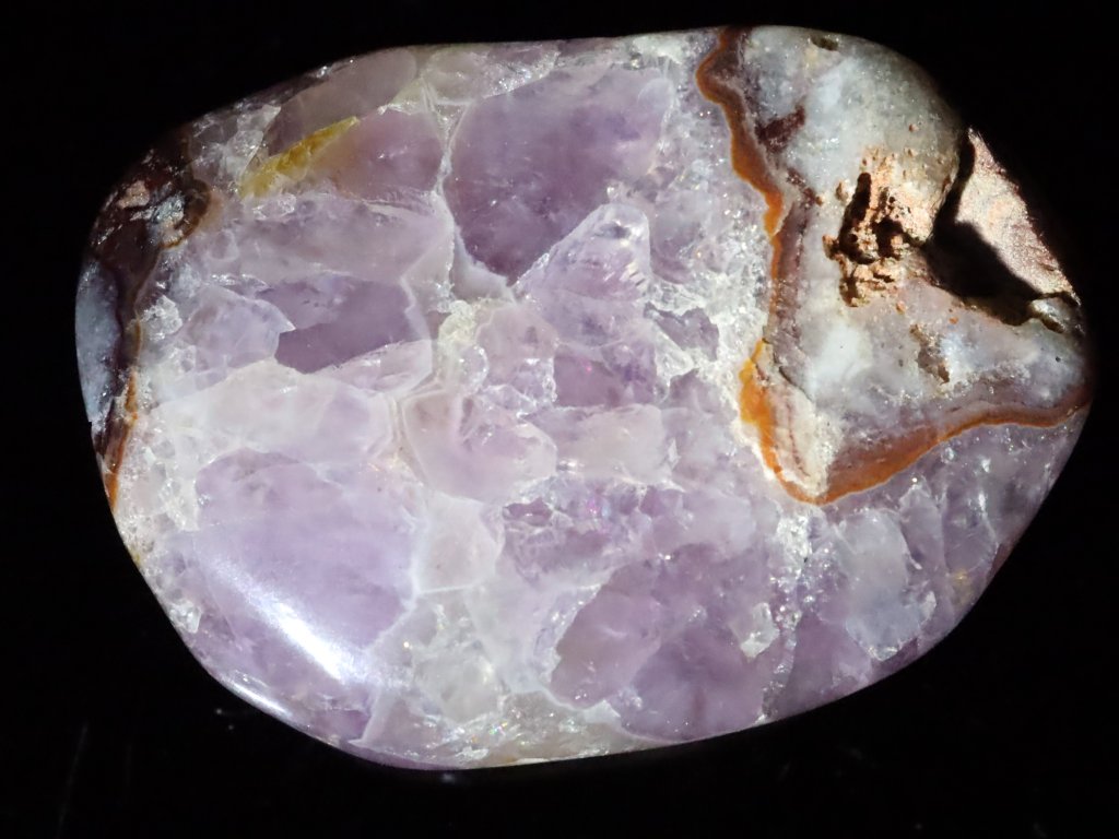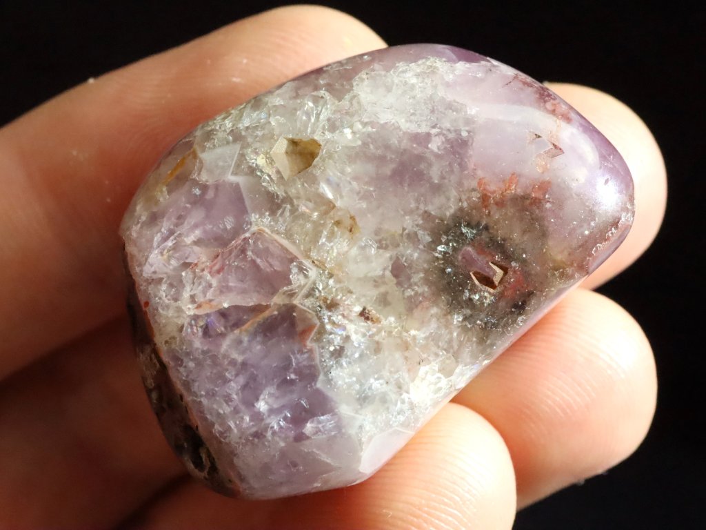 Menší tromlovaný valounek ametystu s křemenem a křišťálem