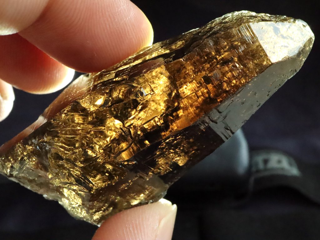 Morion lze však také perfektně prosvítit sluníčkem či baterkou a nahlédnout tak do jeho půvabného vnitřního světa, kde dominuje vysoká až drahokamová čistota s minimem inkluzí (peříček a mlhovinek) - viz. několik snímků.