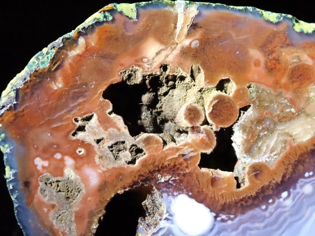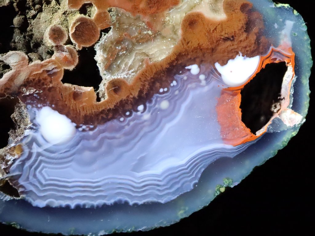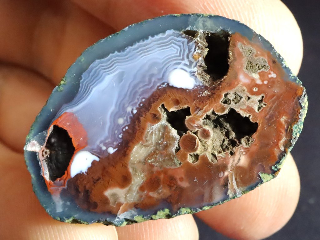 Uvnitř totiž kamínky skrývají působivou a pro acháty typickou kresbu, často i se zajímavou kombinací barev. Můžou se zde někdy vyskytovat i příměsy dalších minerálů nejčastěji bílého až čirého křišťálu, fialového ametystu, jaspisu či karneolu.