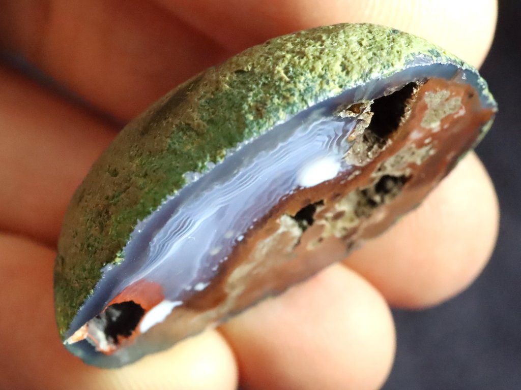 Tyto achátové pecky na první pohled tedy vypadají docela obyčejně a nepůsobí příliš atraktivně, takže by jste si jich při hledání na zoraném poli nejspíše ani nevšimli.