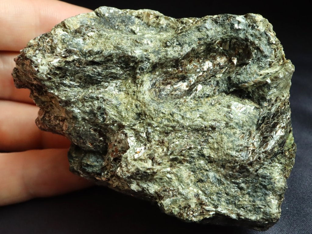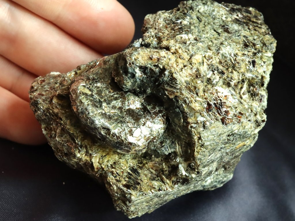 Při manipulaci s tímto kamenem buďtě také šetrní, protože při neopatrném zacházení se ze vzorku mohou uvolňovat drobounké lupínky tmavé slídy. Nemusíte mít však strach, při bežném prohlížení v ruce tento vzorek rozhodně nějak nepoškodíte.